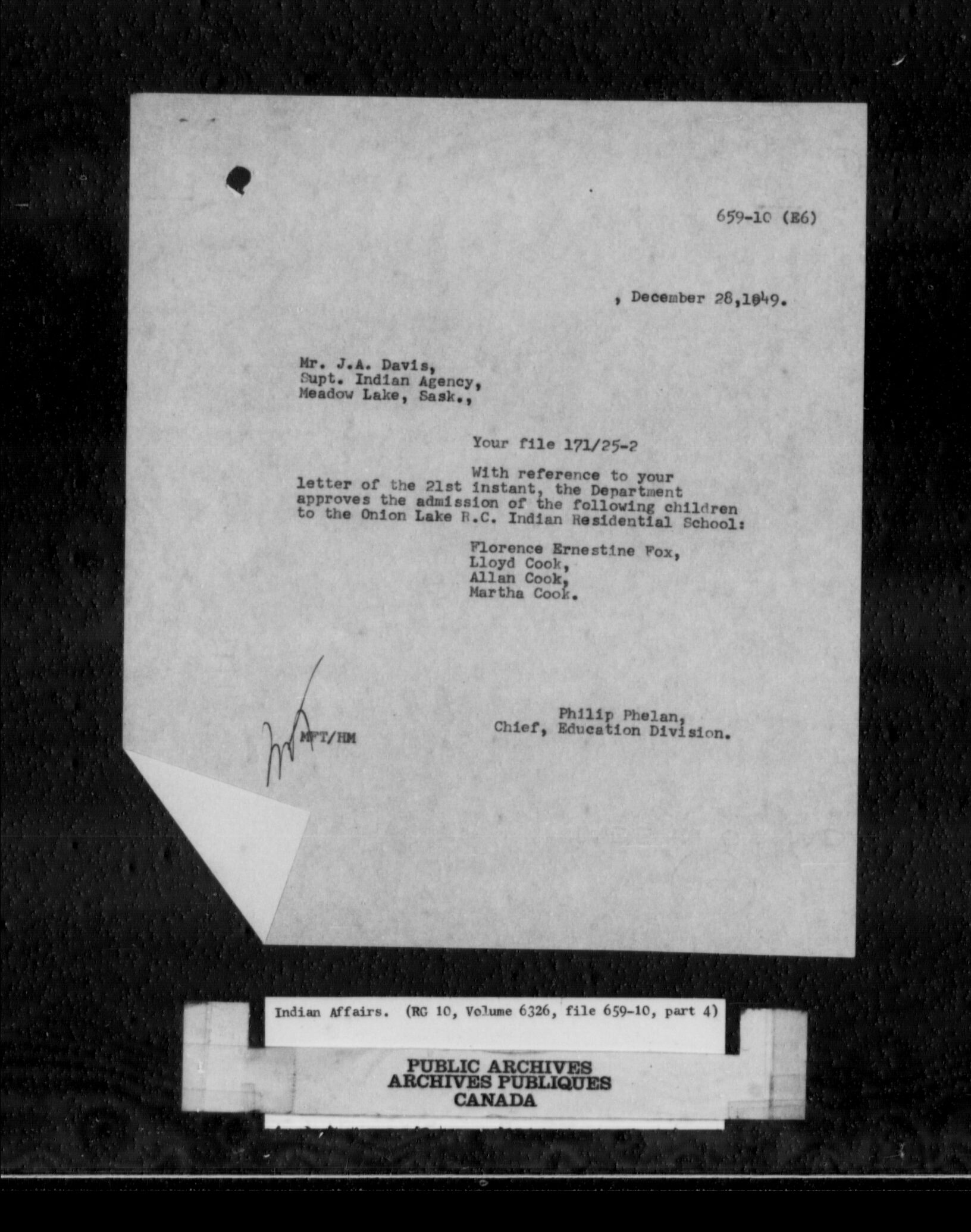 Department of Indian Affairs: School files series - C-9806