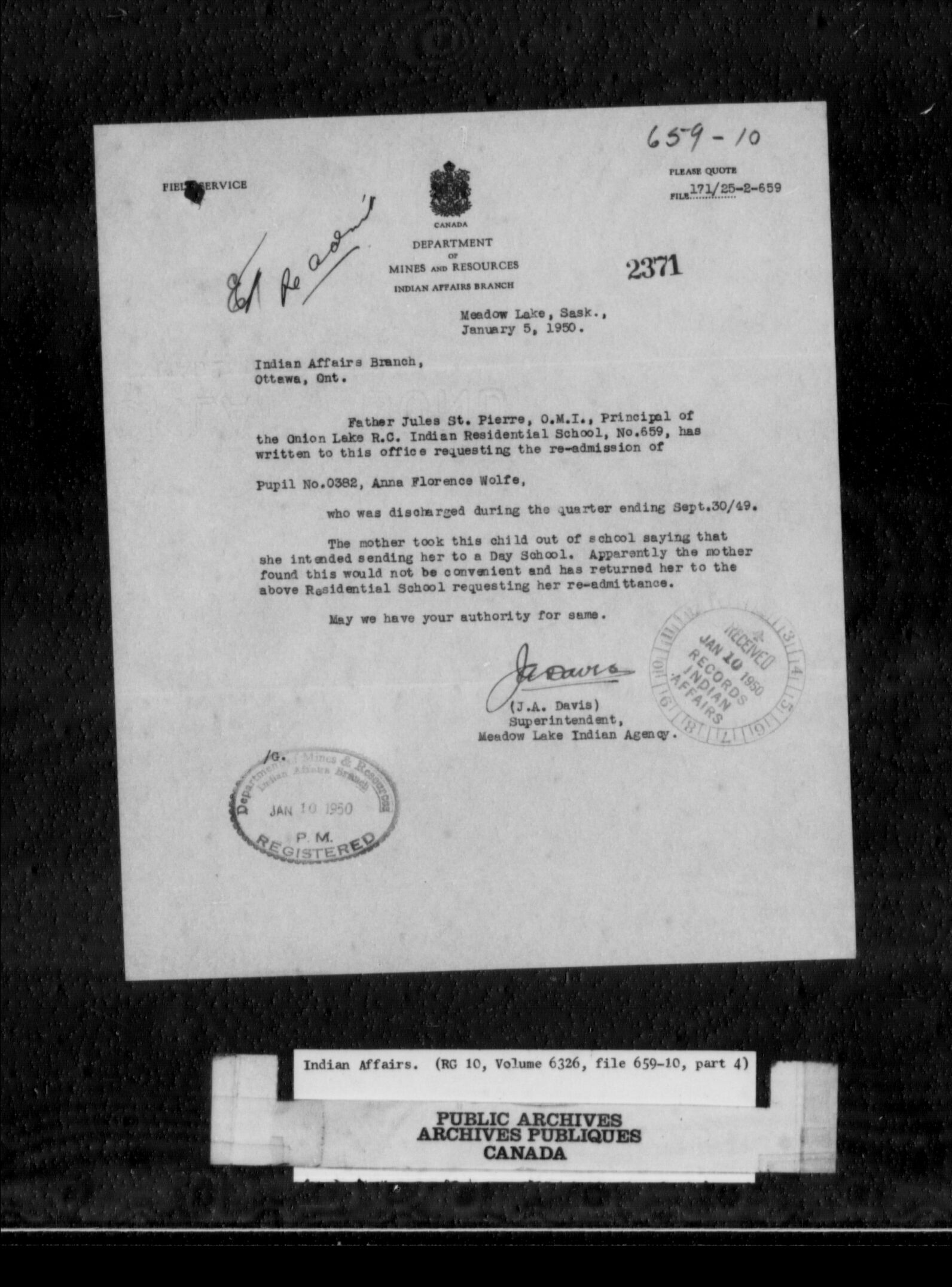 Department of Indian Affairs: School files series - C-9806