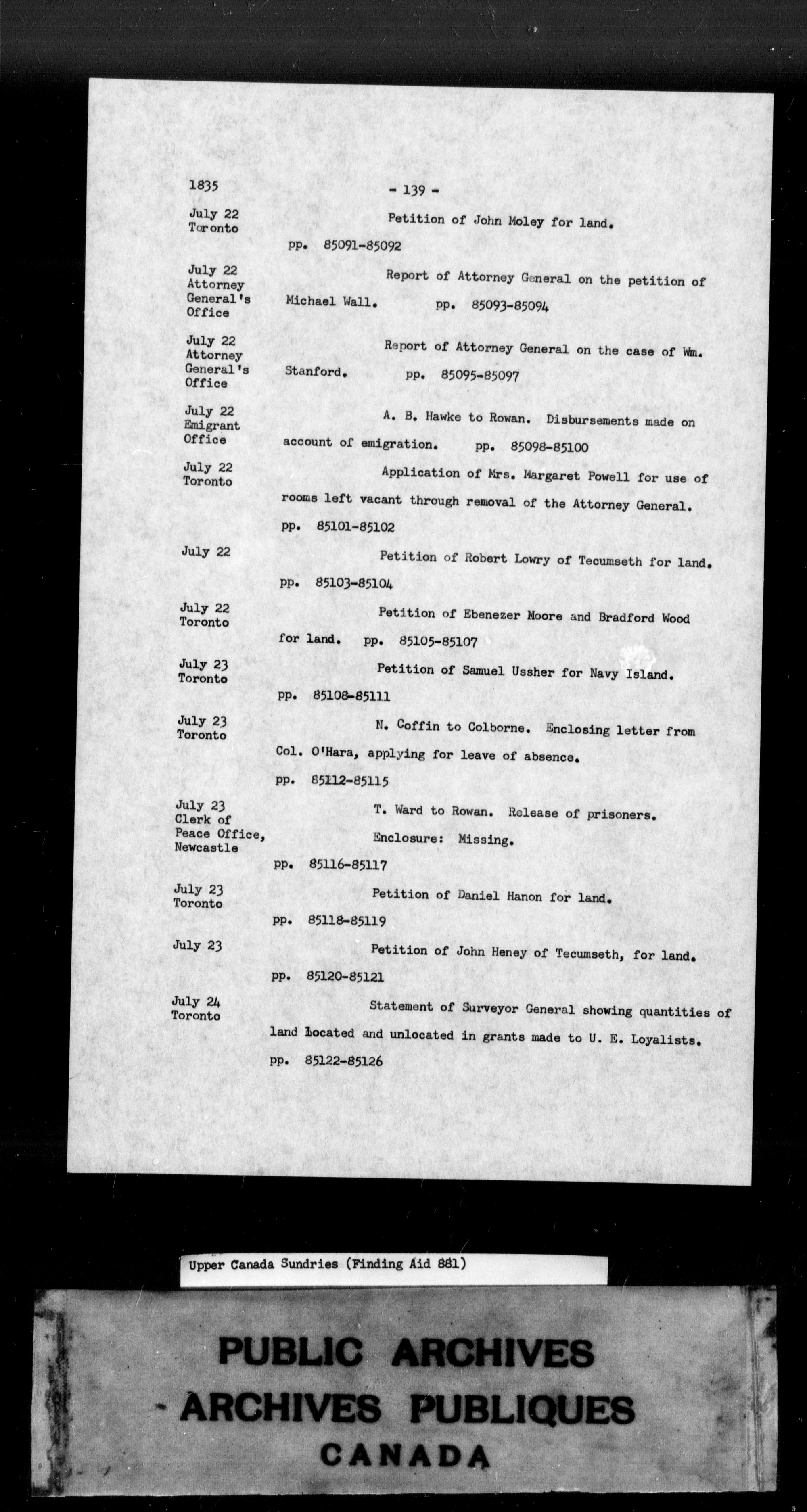 Upper Canada Sundries Finding Aid - C-9824