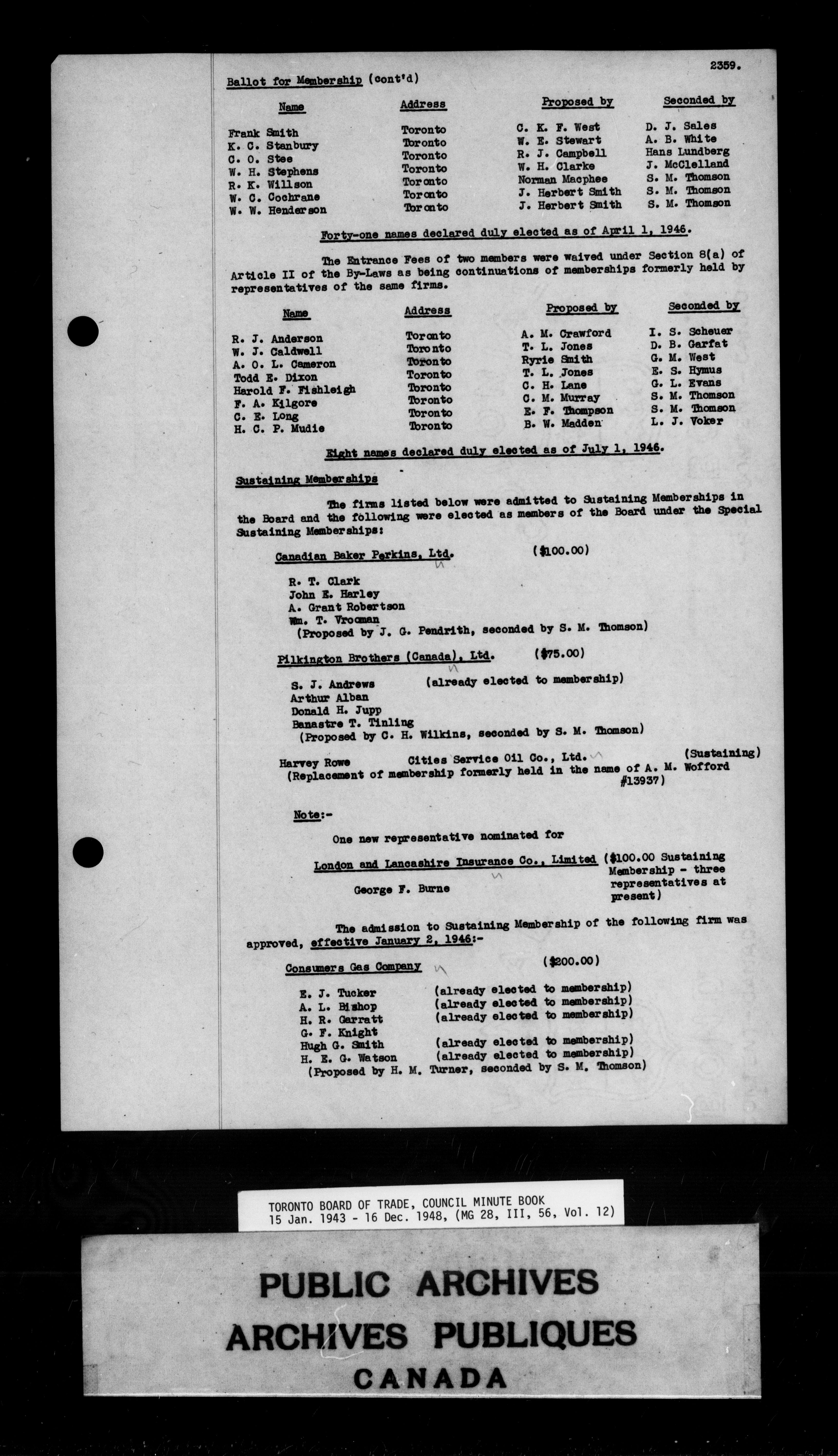 Toronto Board of Trade council minutes - 9830