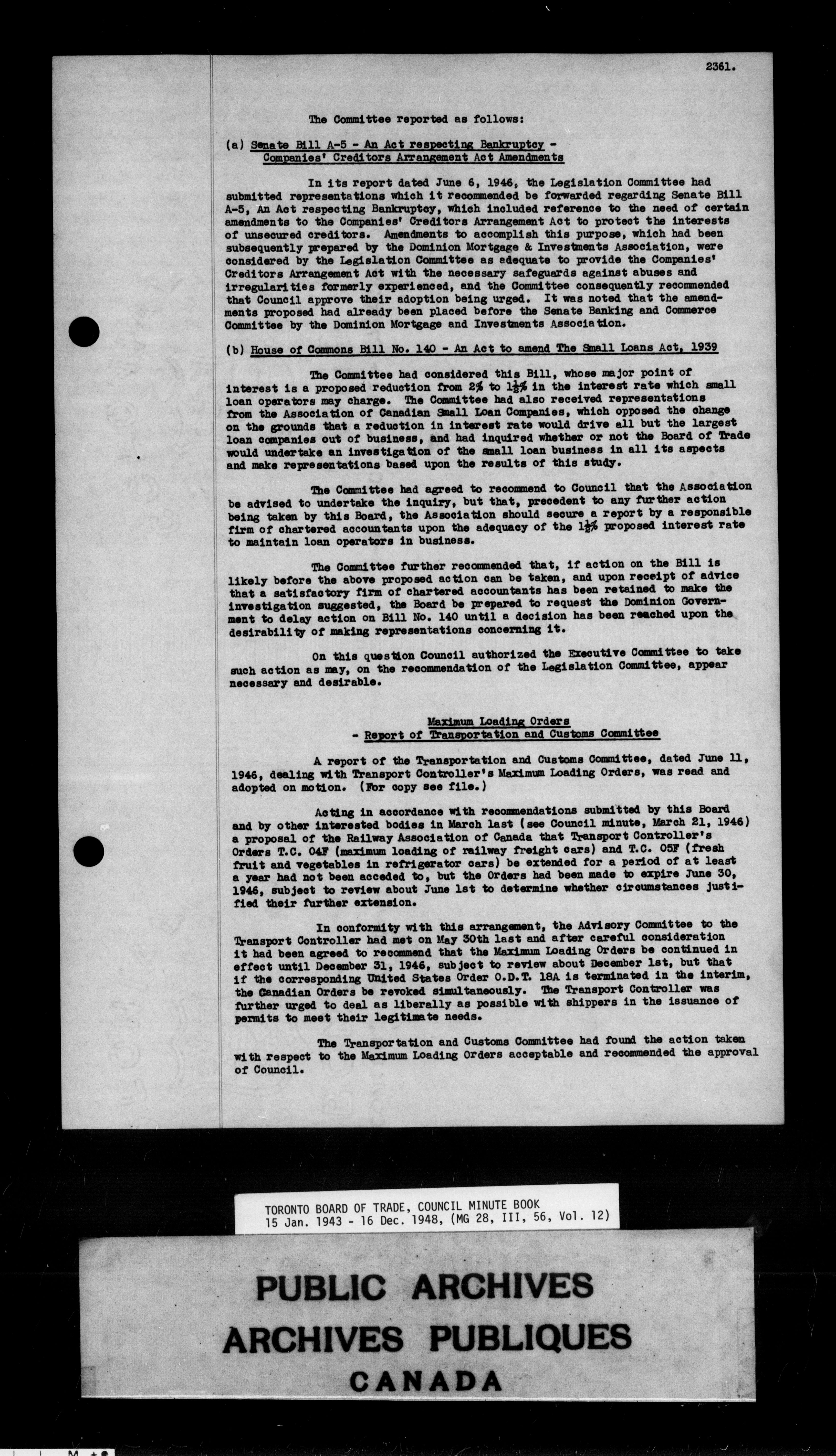 Toronto Board of Trade council minutes - 9830