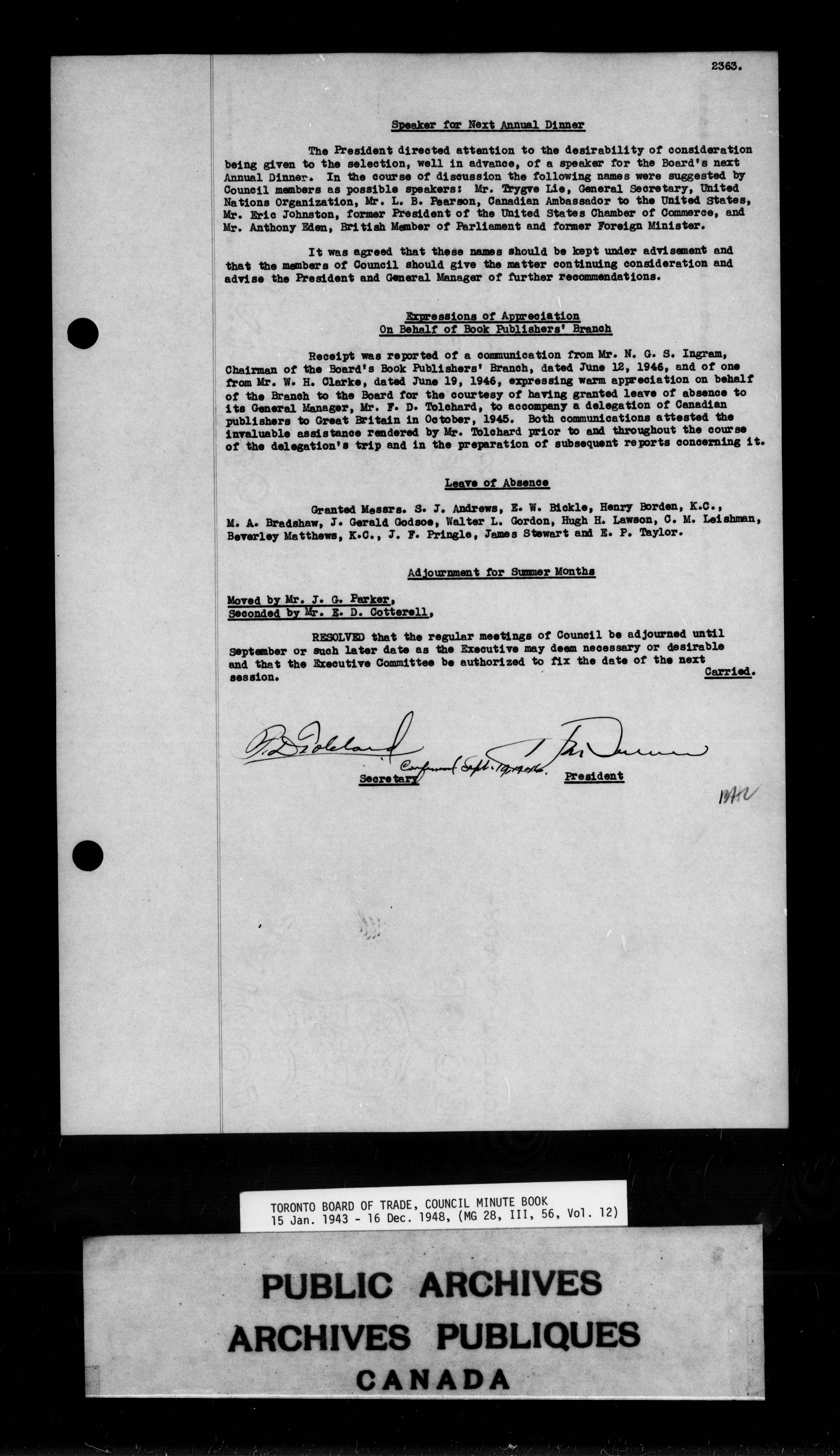 Toronto Board of Trade council minutes - 9830