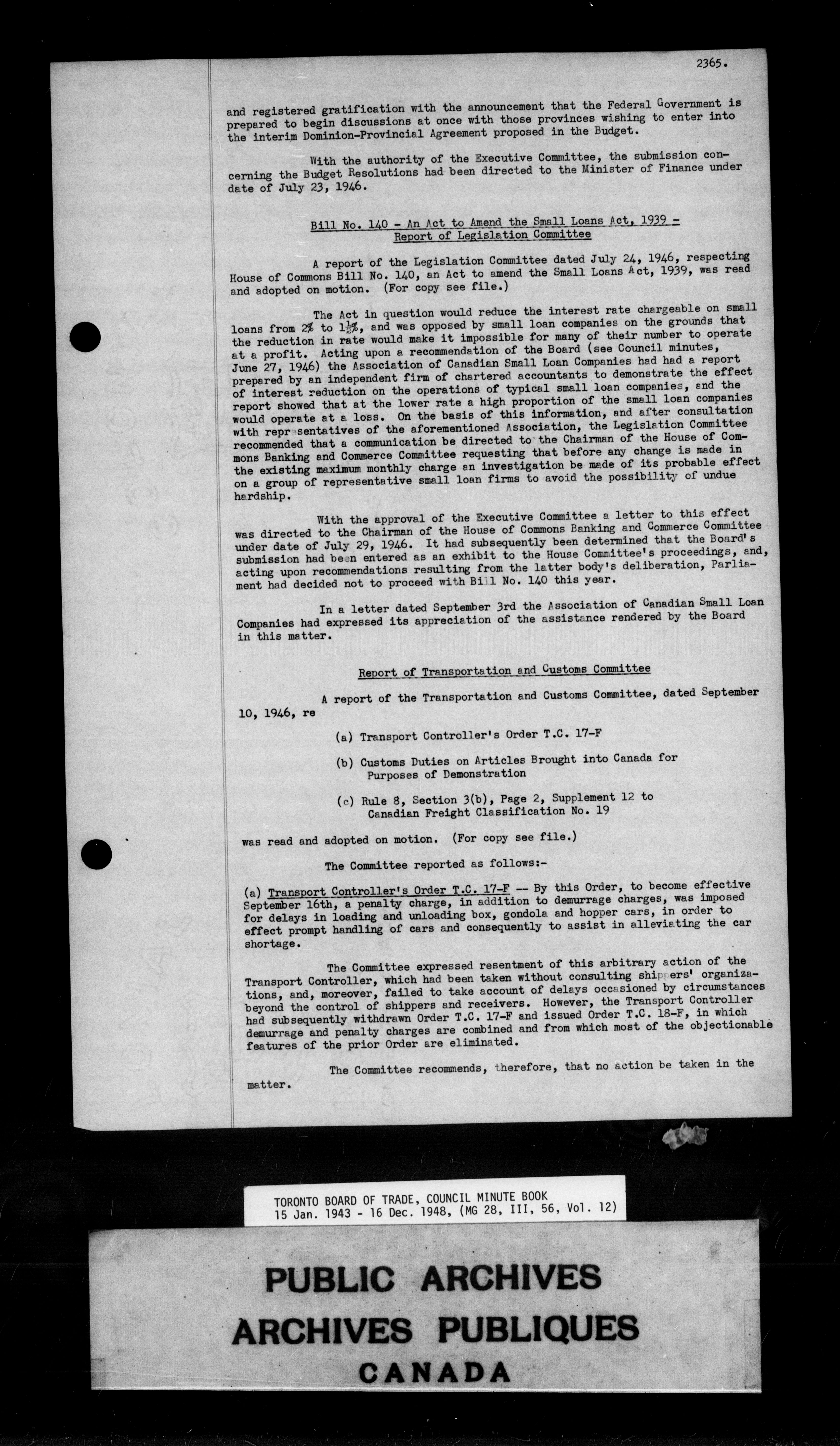 Toronto Board of Trade council minutes - 9830