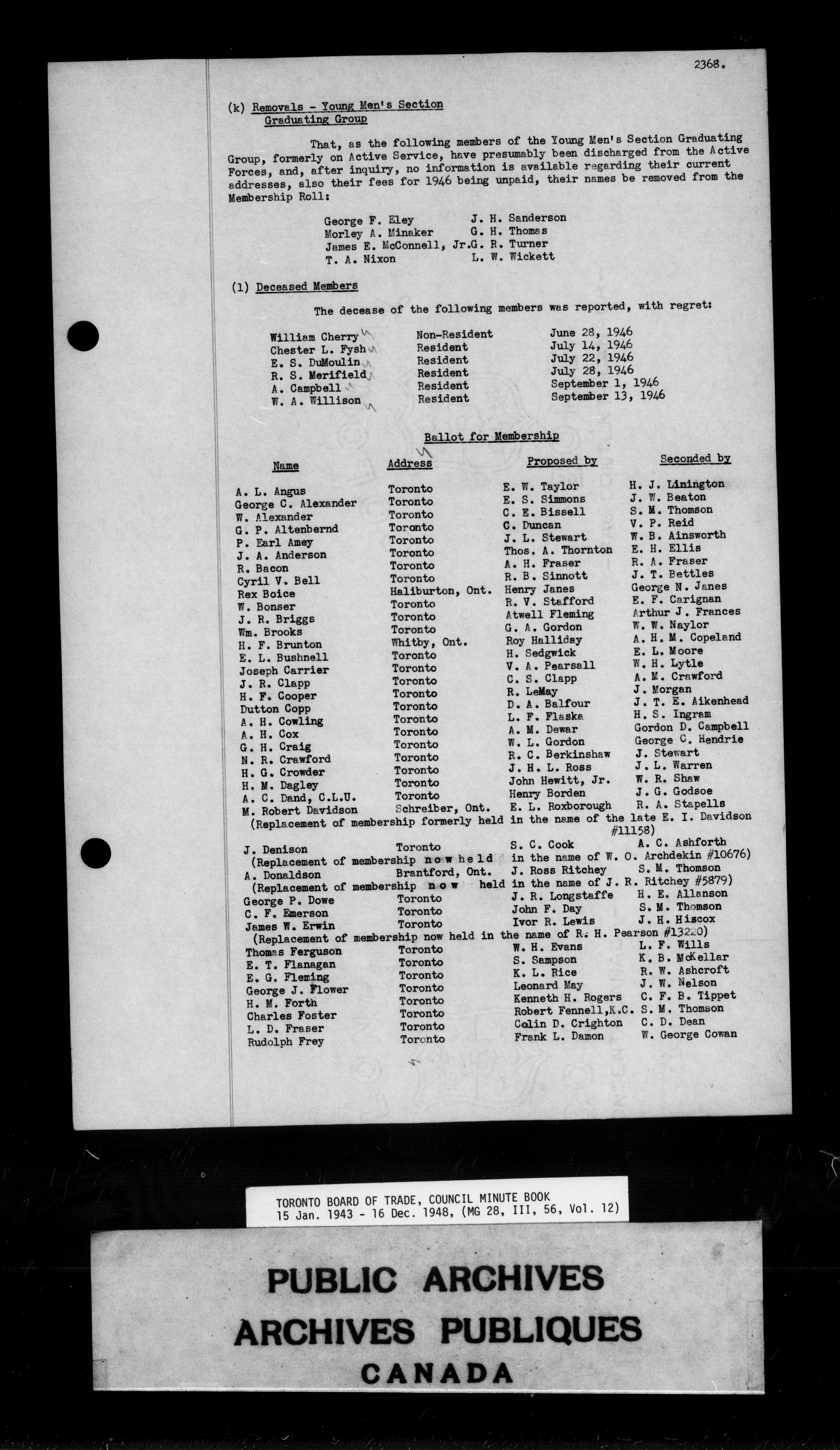 Toronto Board of Trade council minutes - 9830