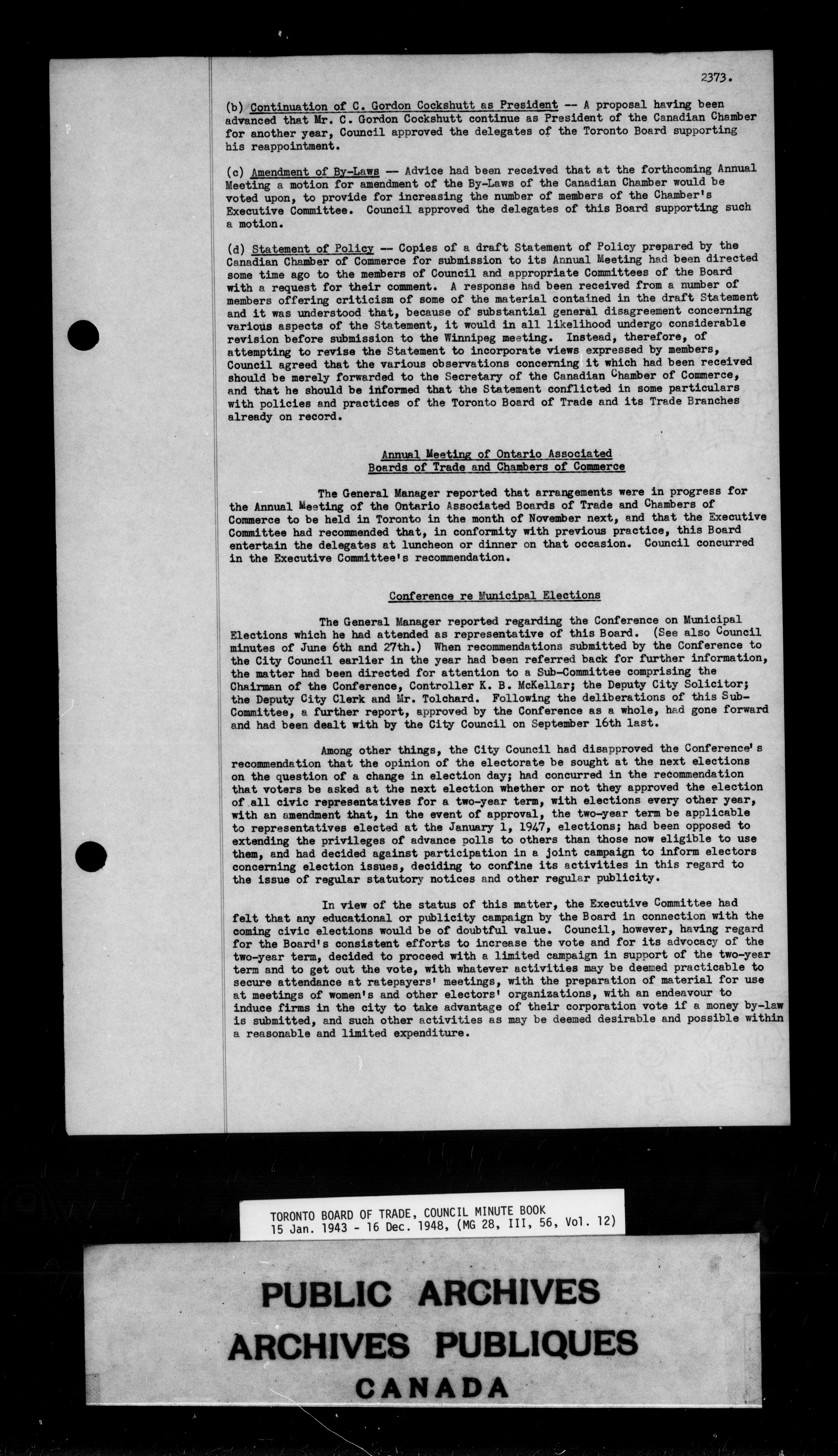 Toronto Board of Trade council minutes - 9830