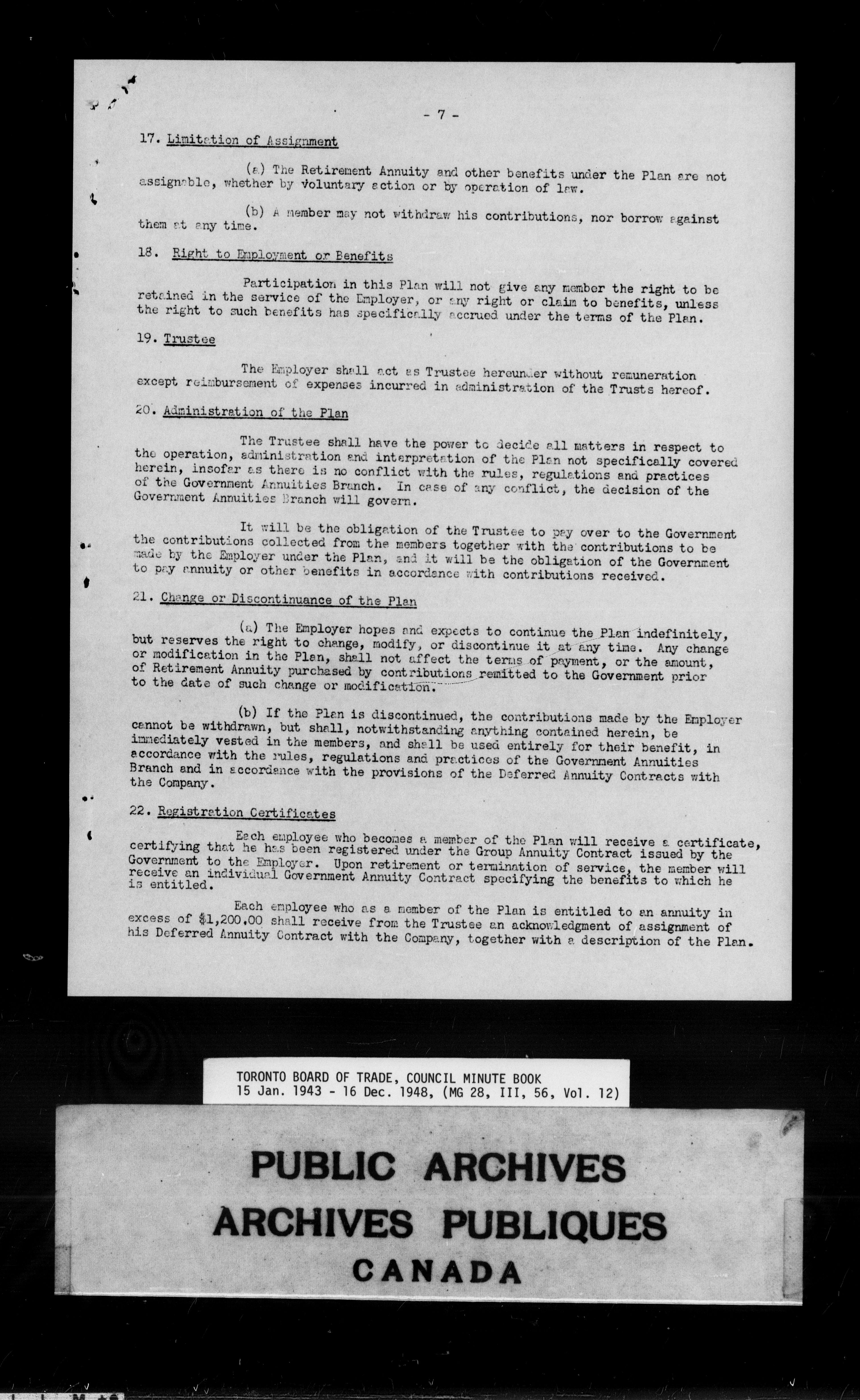 Toronto Board of Trade council minutes - 9830