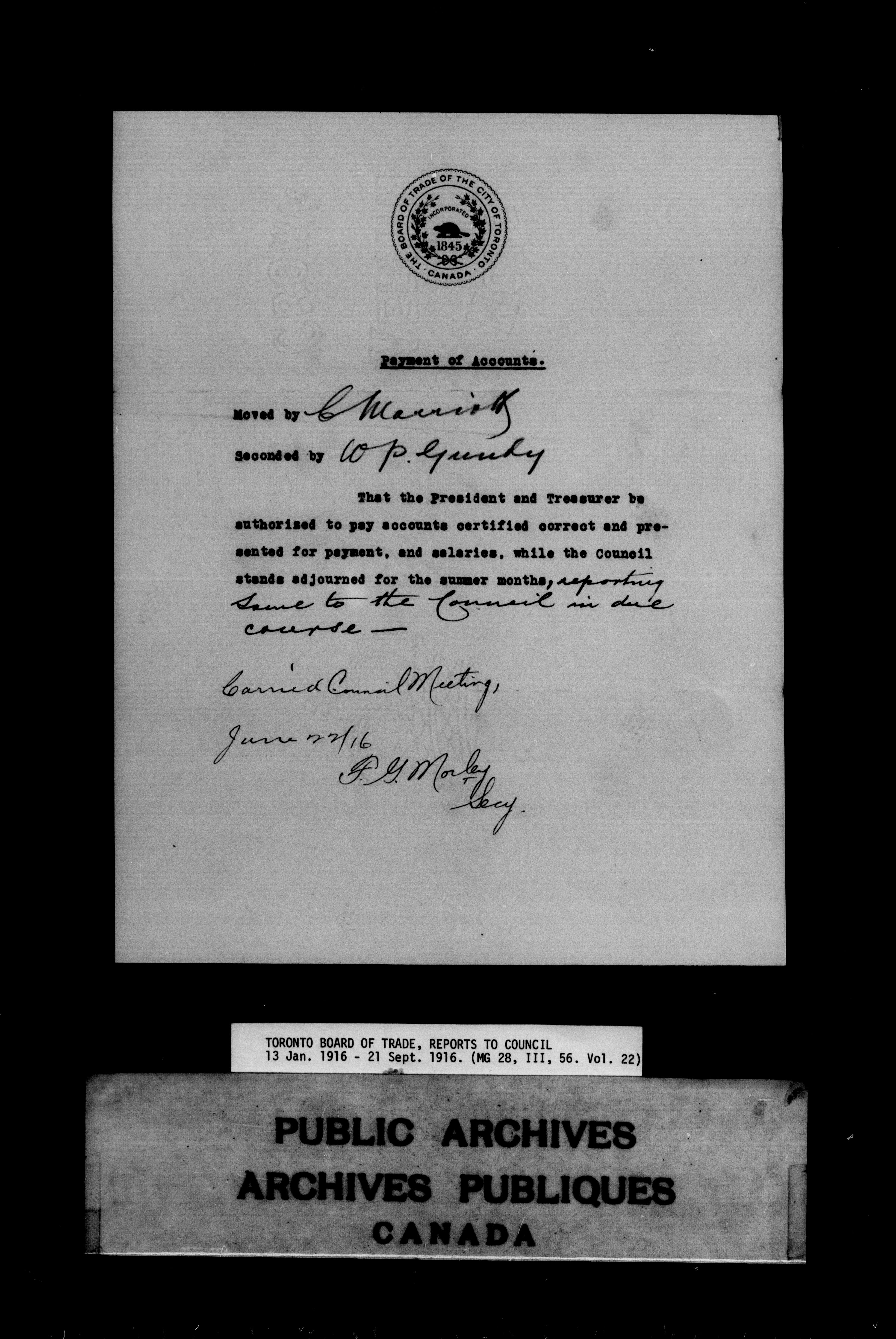 Toronto Board of Trade : reports to council - 9833
