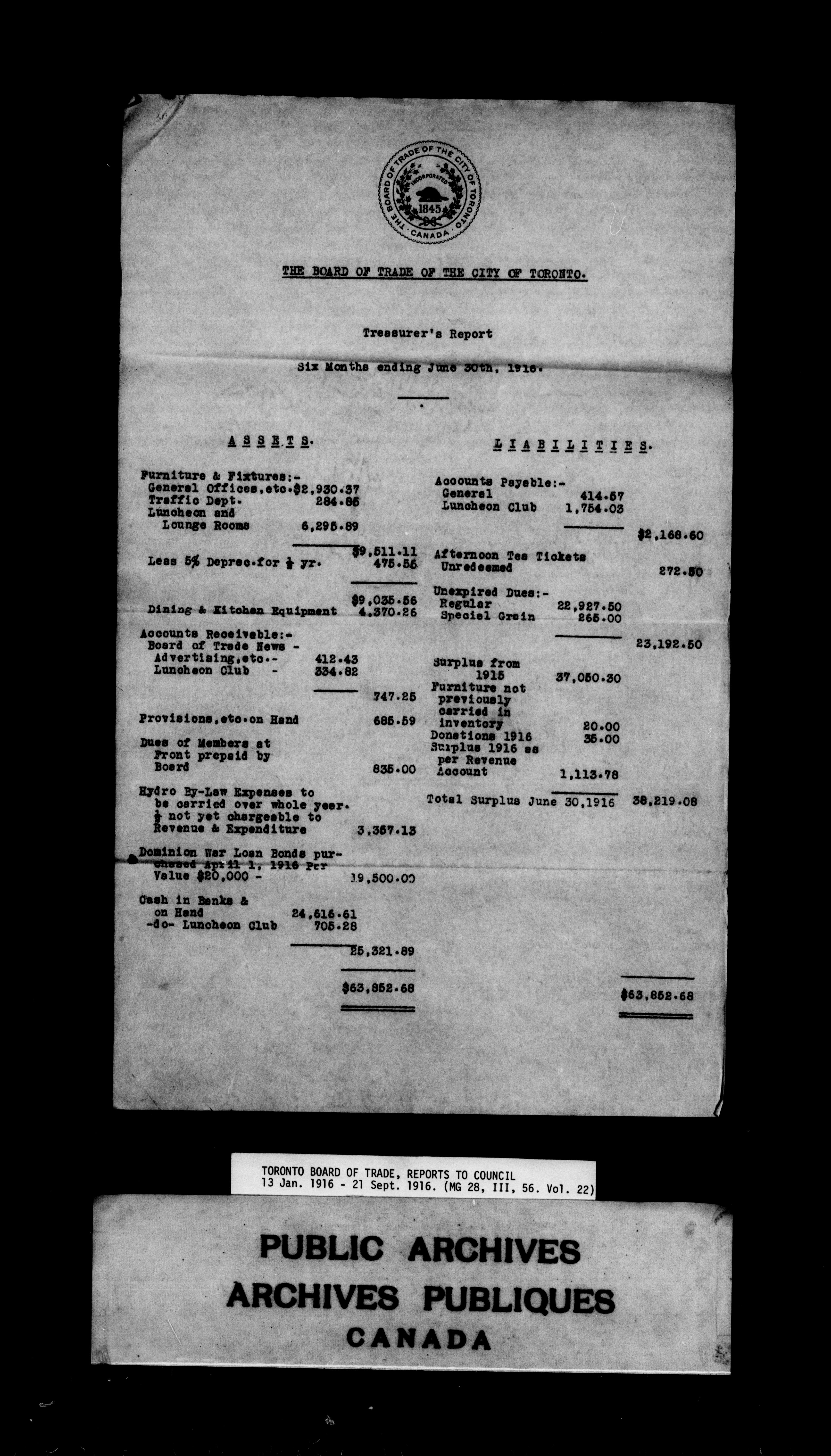 Toronto Board of Trade : reports to council - 9833
