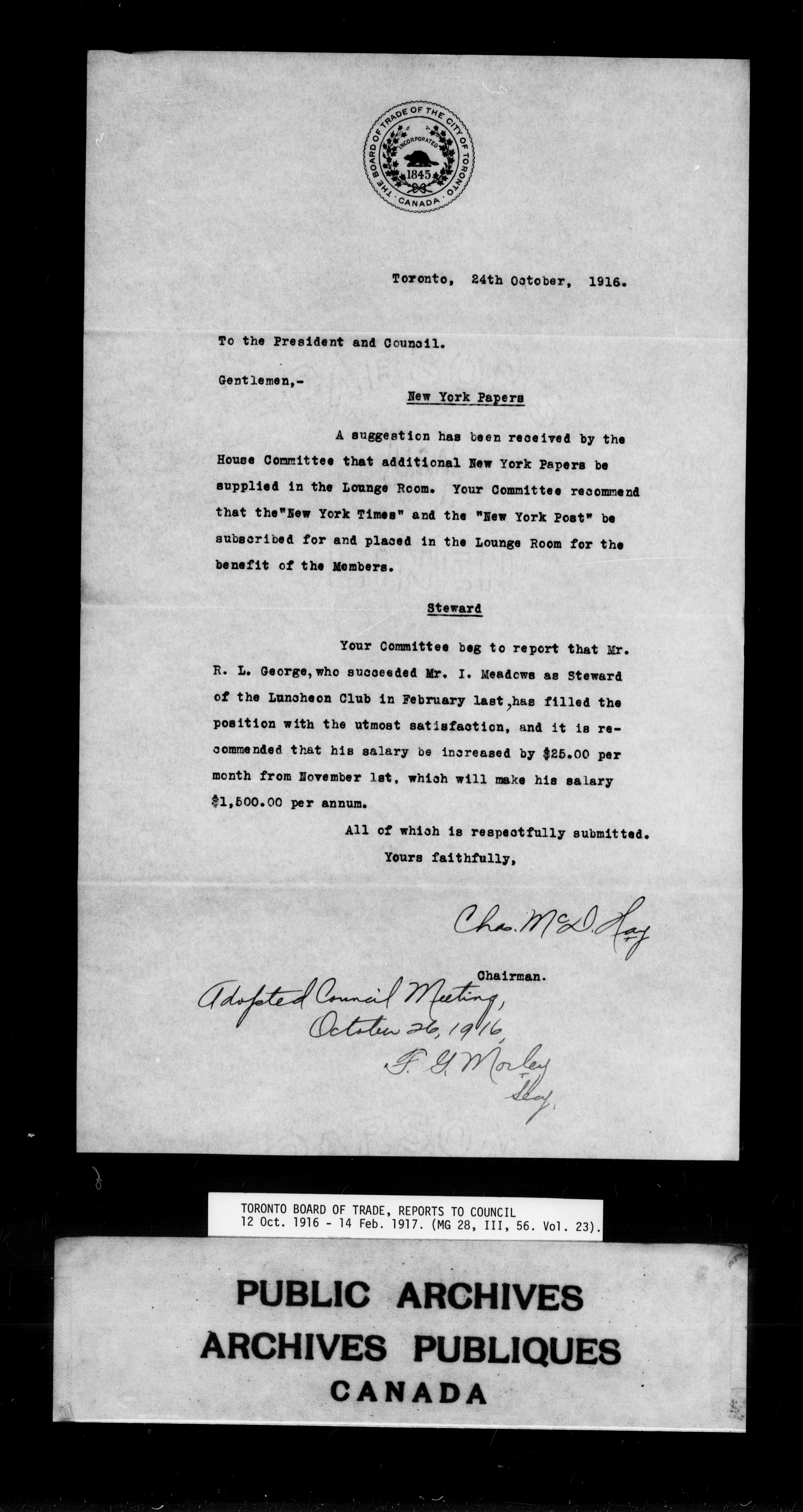 Toronto Board of Trade : reports to council - 9834