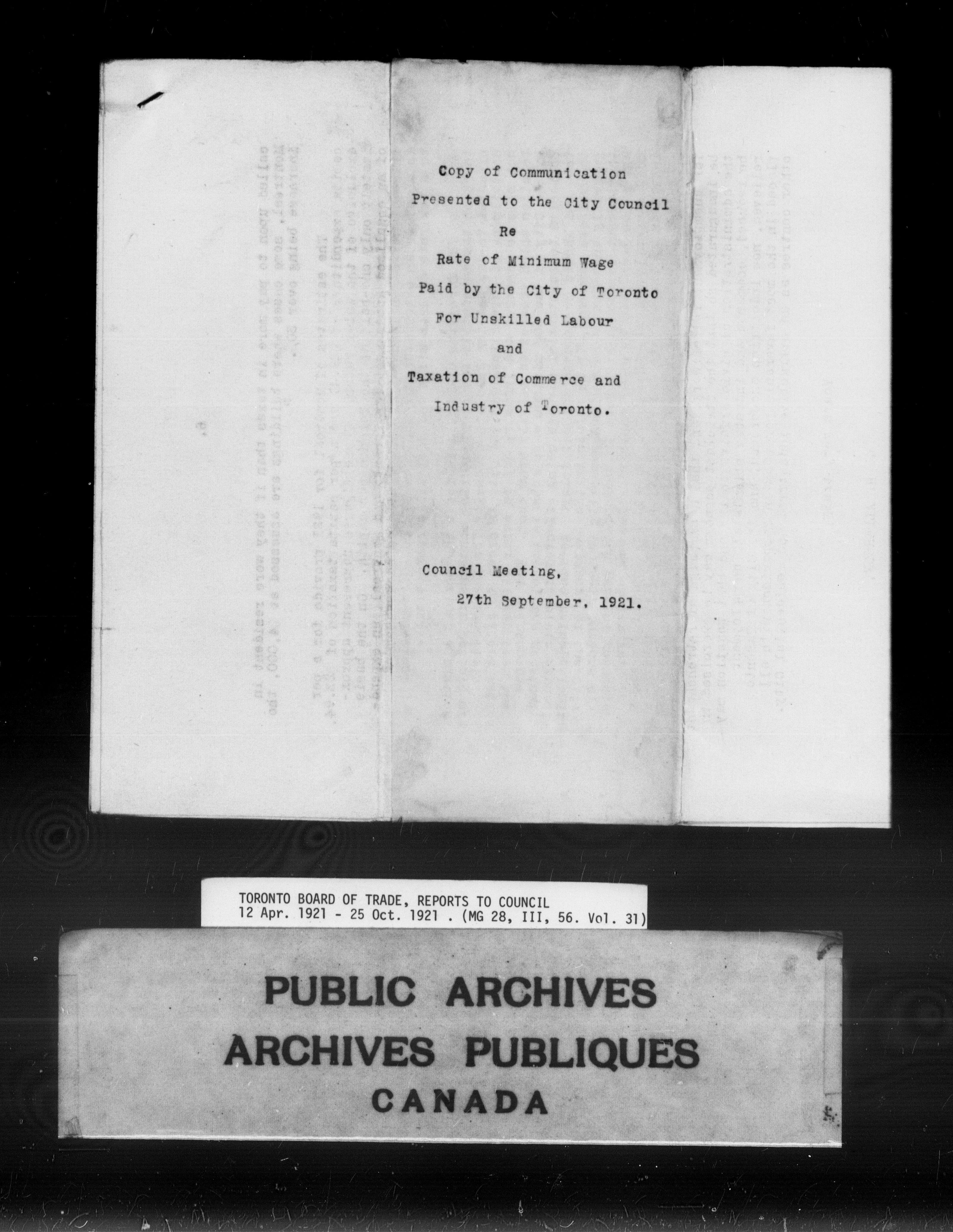 Toronto Board of Trade : reports to council : C-9835