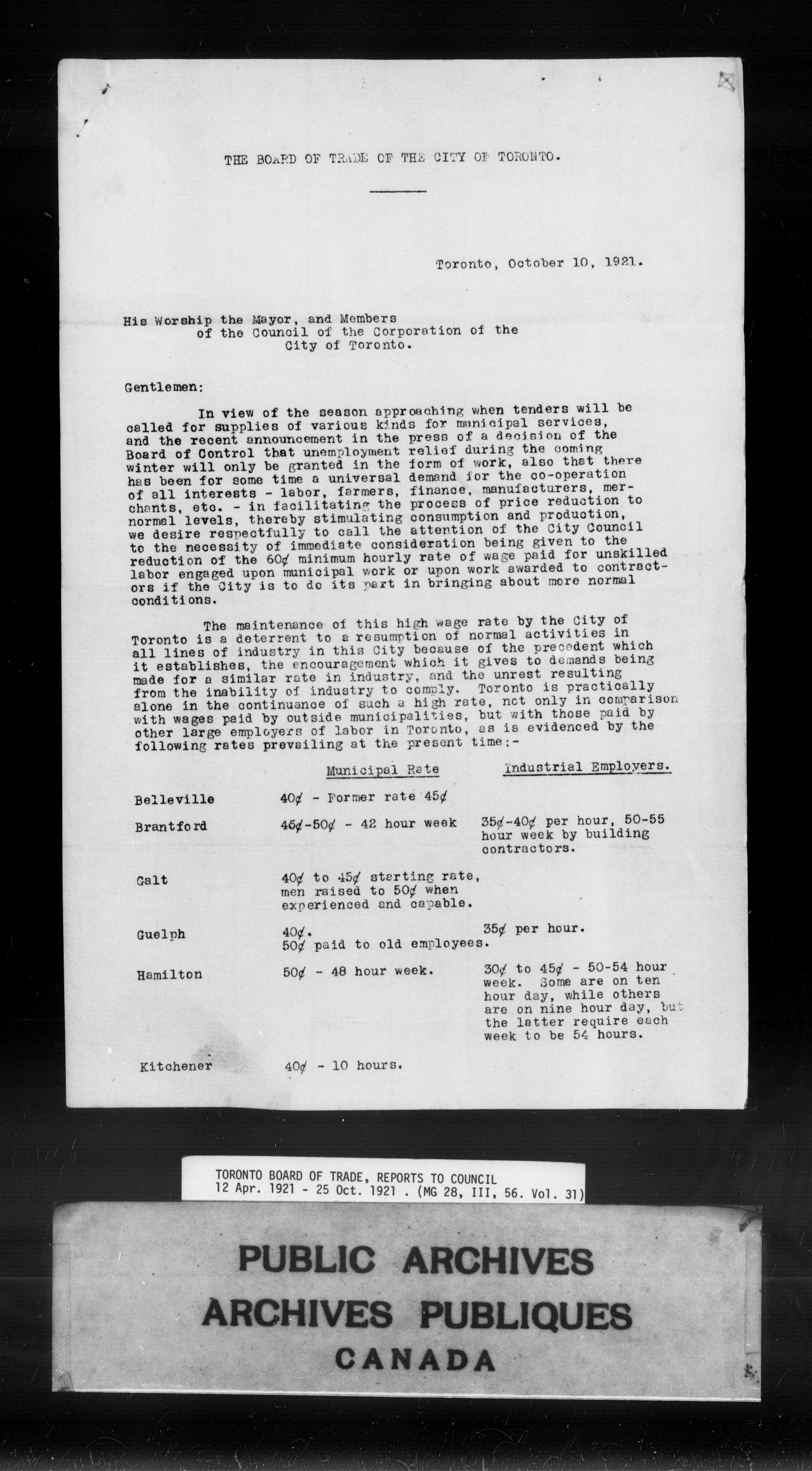 Toronto Board of Trade : reports to council : C-9835