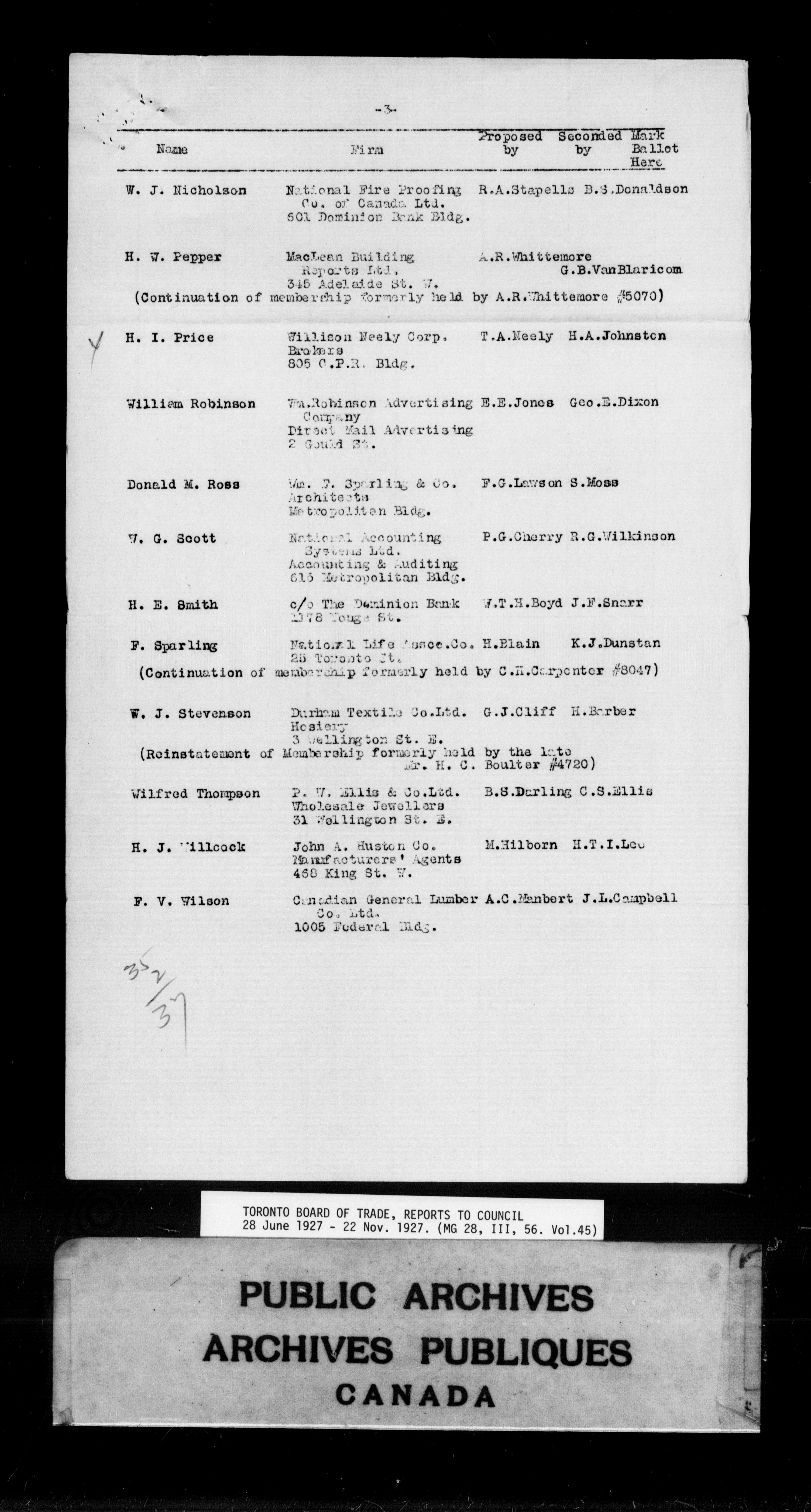 Toronto Board of Trade : reports to council - 9837
