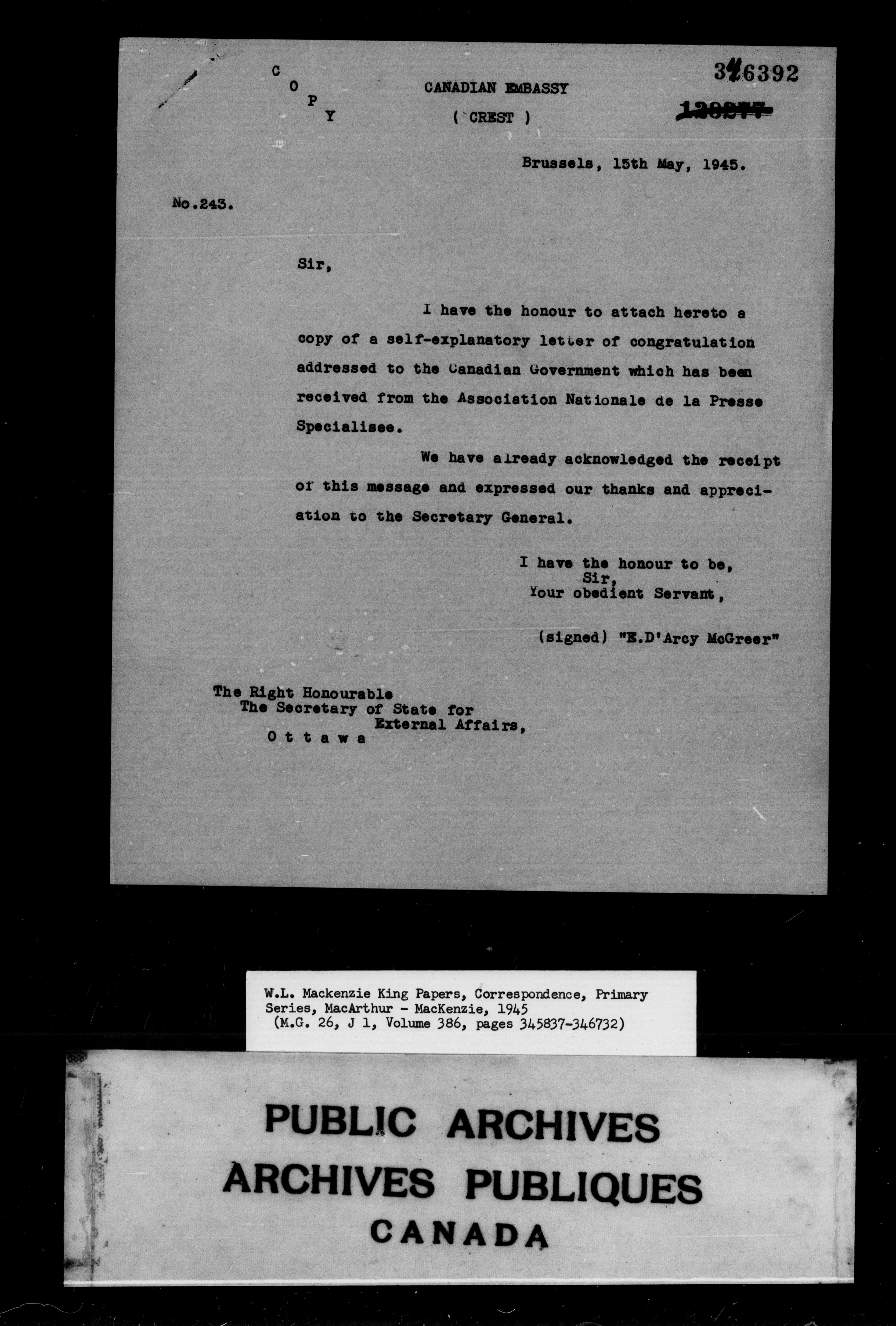 William Lyon Mackenzie King : Primary series correspondence (J1) - 9877