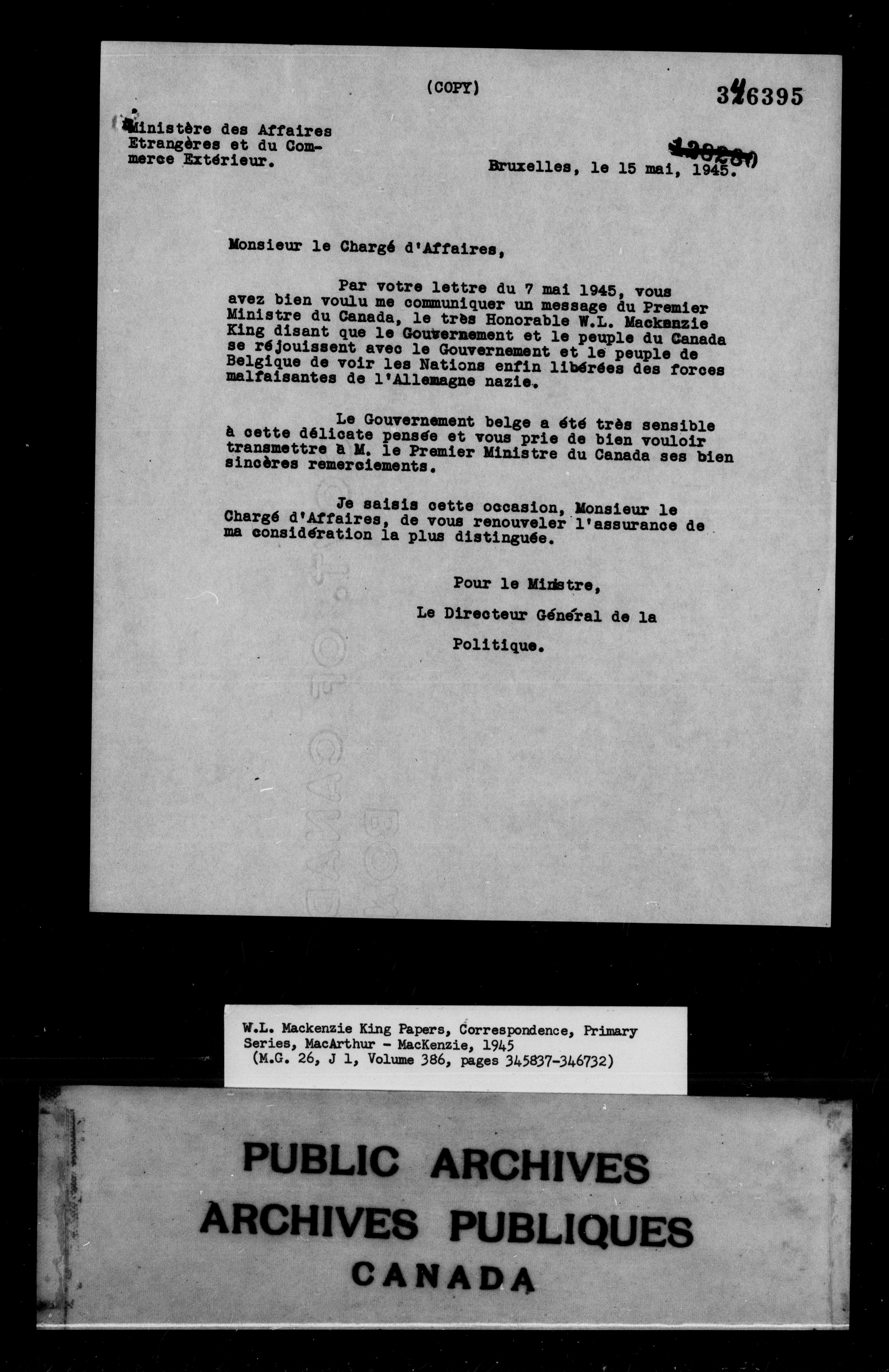 William Lyon Mackenzie King : Primary series correspondence (J1) - 9877