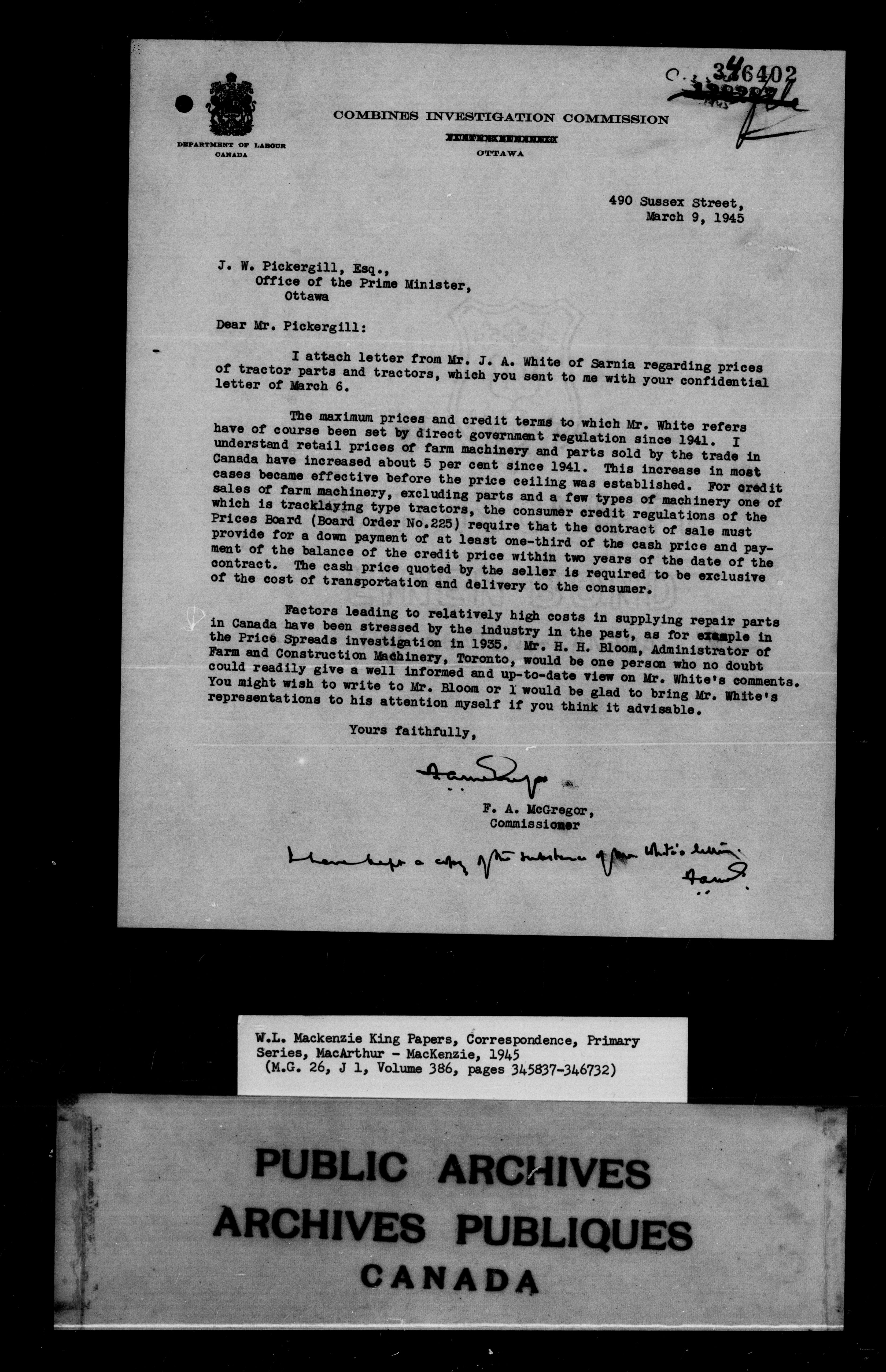 William Lyon Mackenzie King : Primary series correspondence (J1) - 9877