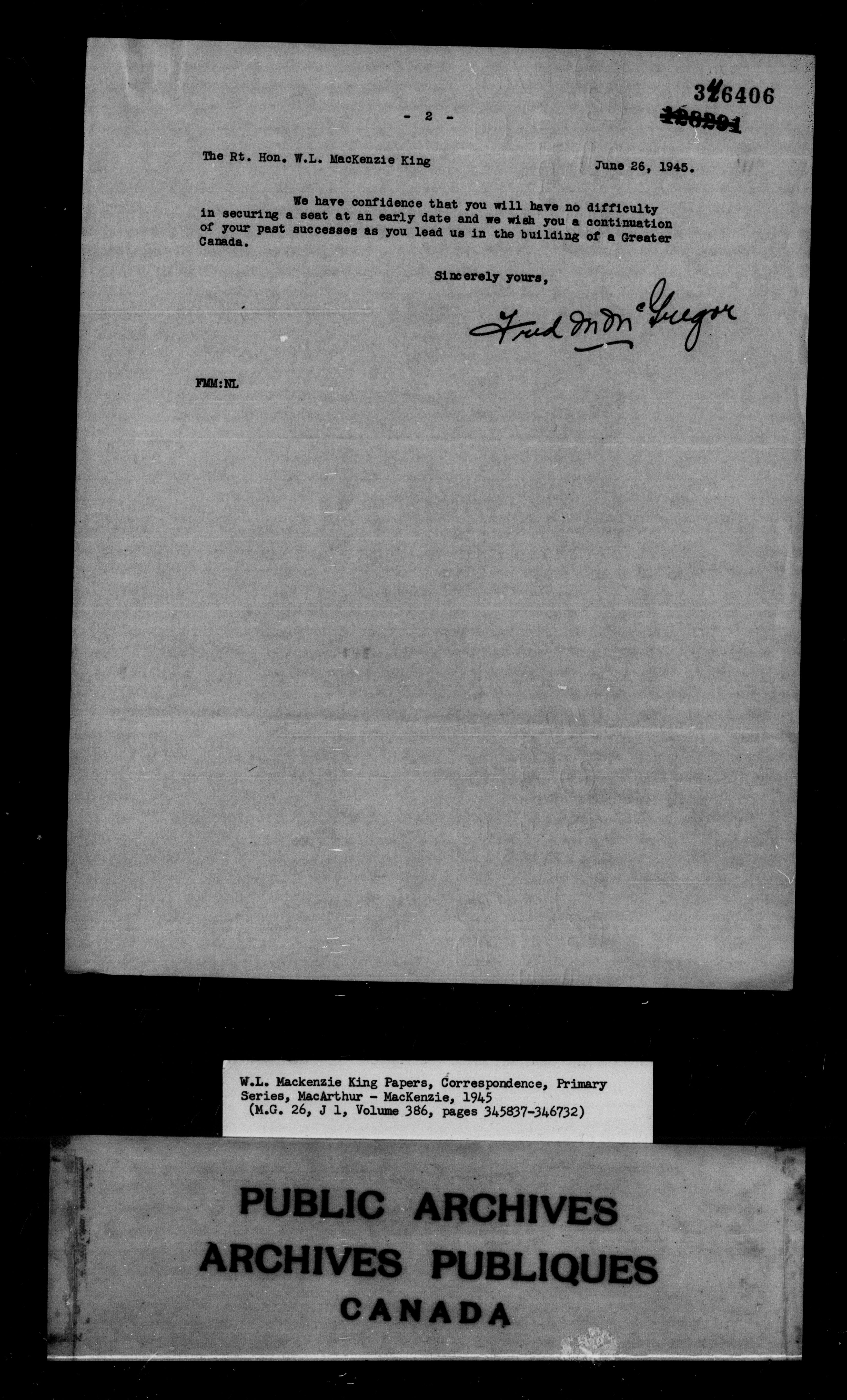 William Lyon Mackenzie King : Primary series correspondence (J1) - 9877