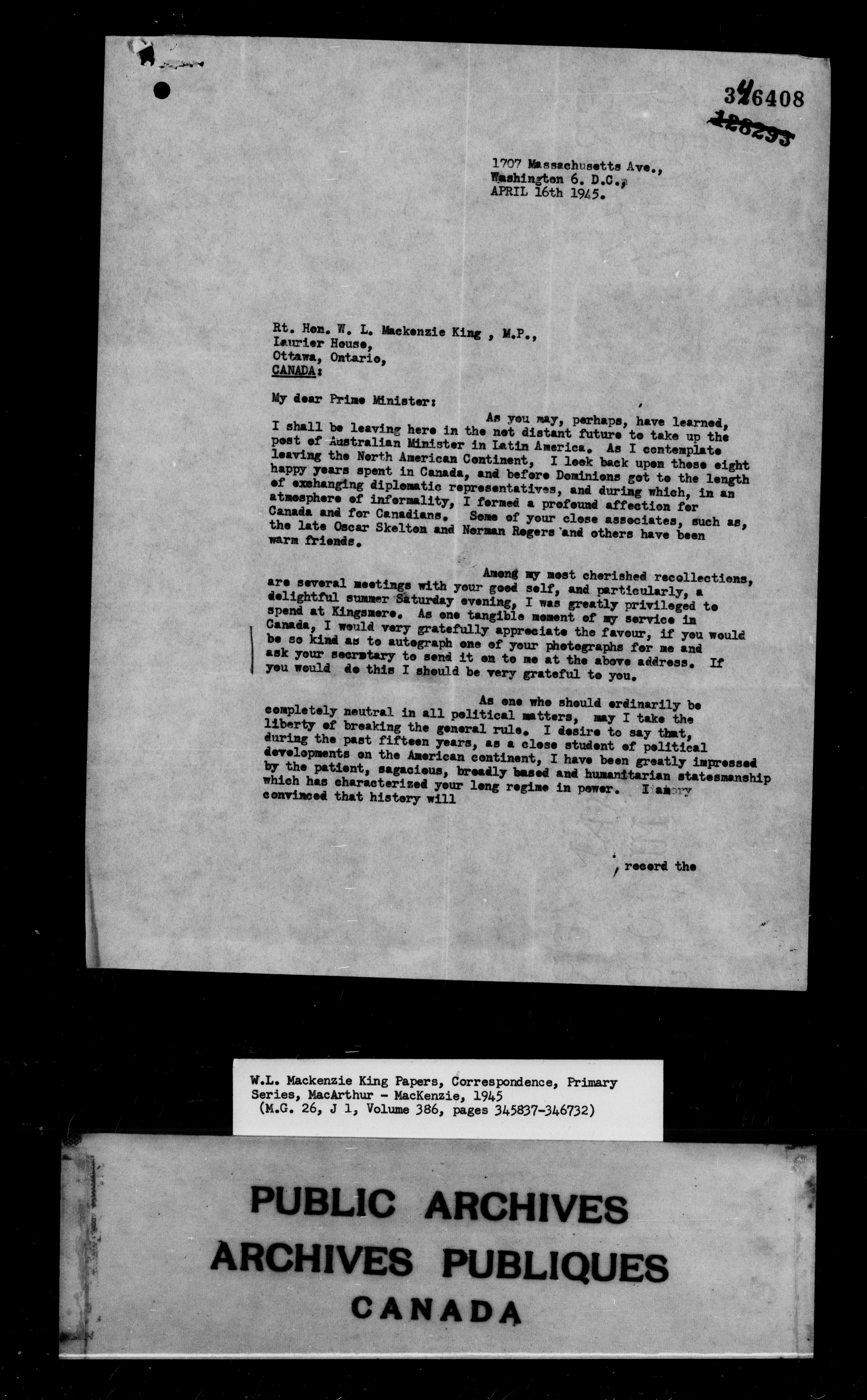 William Lyon Mackenzie King : Primary series correspondence (J1) - 9877