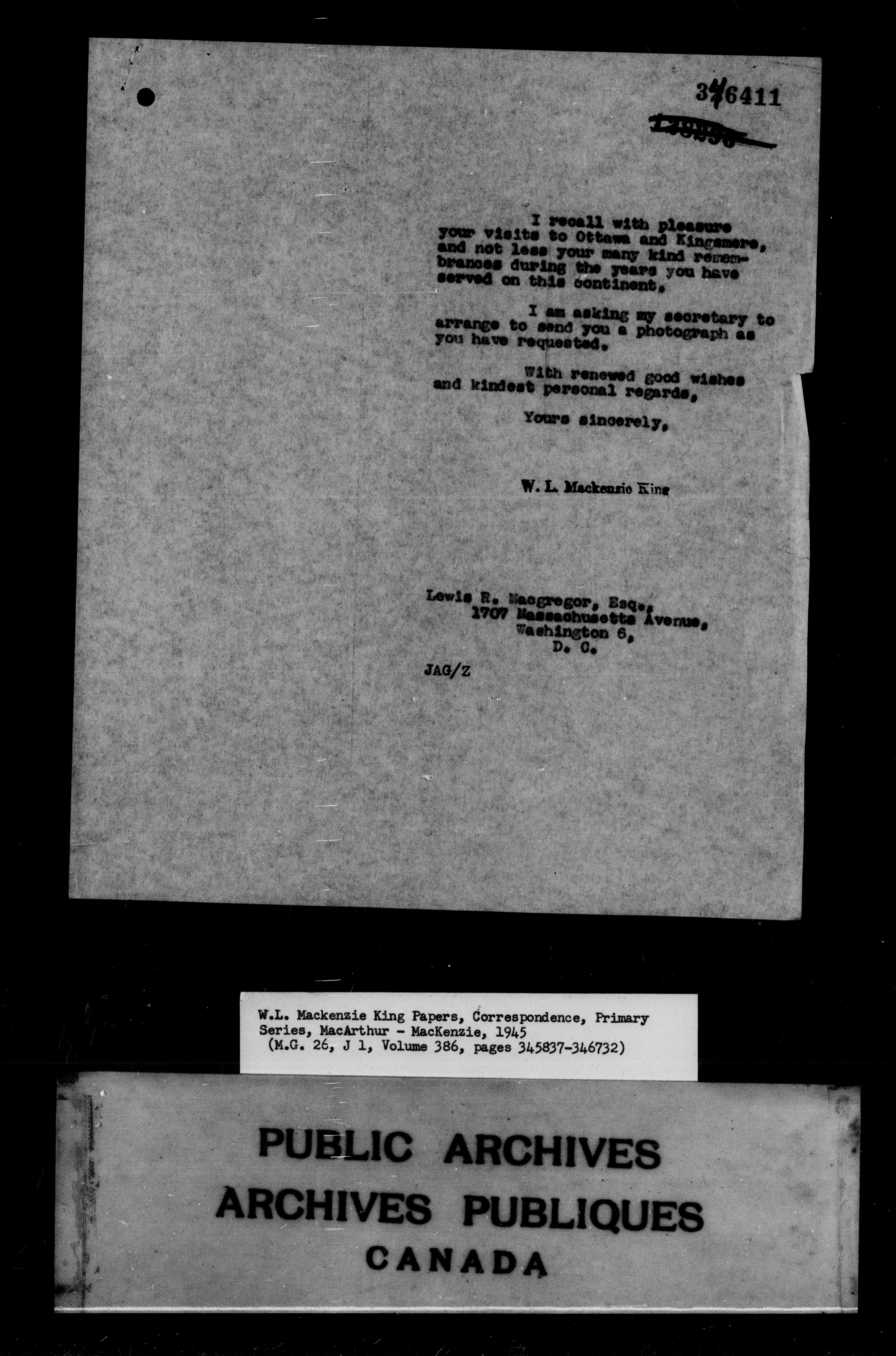 William Lyon Mackenzie King : Primary series correspondence (J1) - 9877