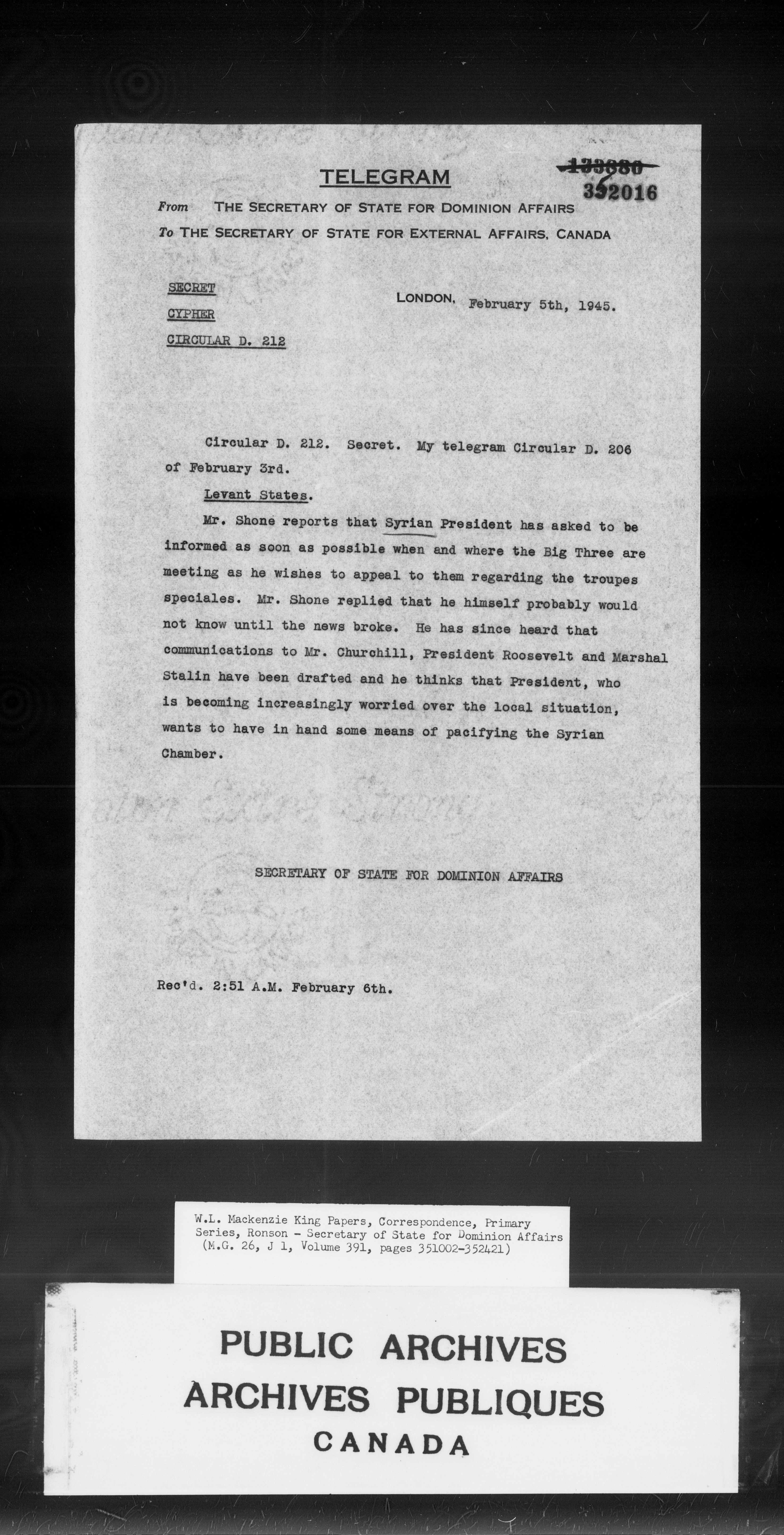 William Lyon Mackenzie King : Primary series correspondence (J1) : C-9880