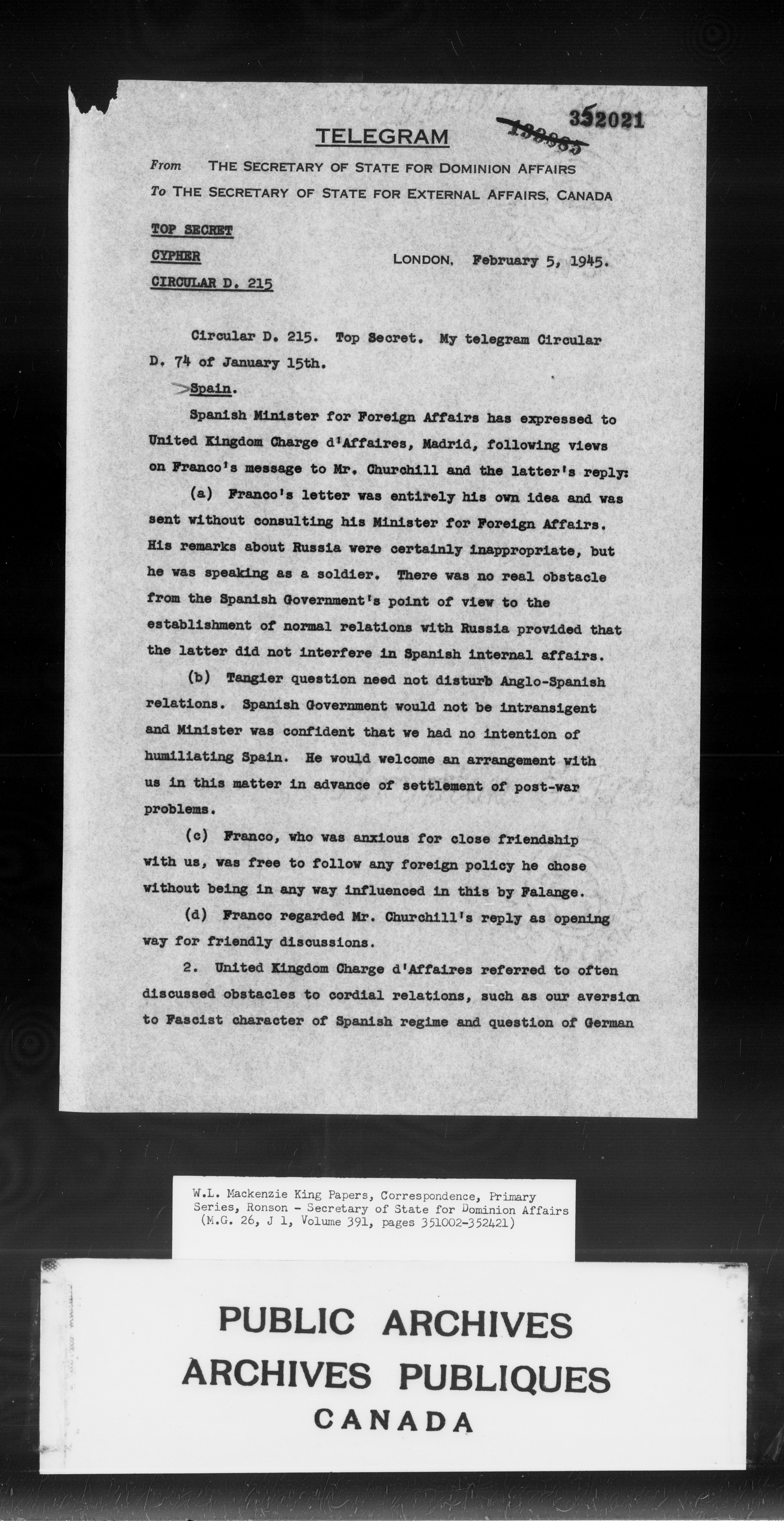 William Lyon Mackenzie King : Primary series correspondence (J1) : C-9880