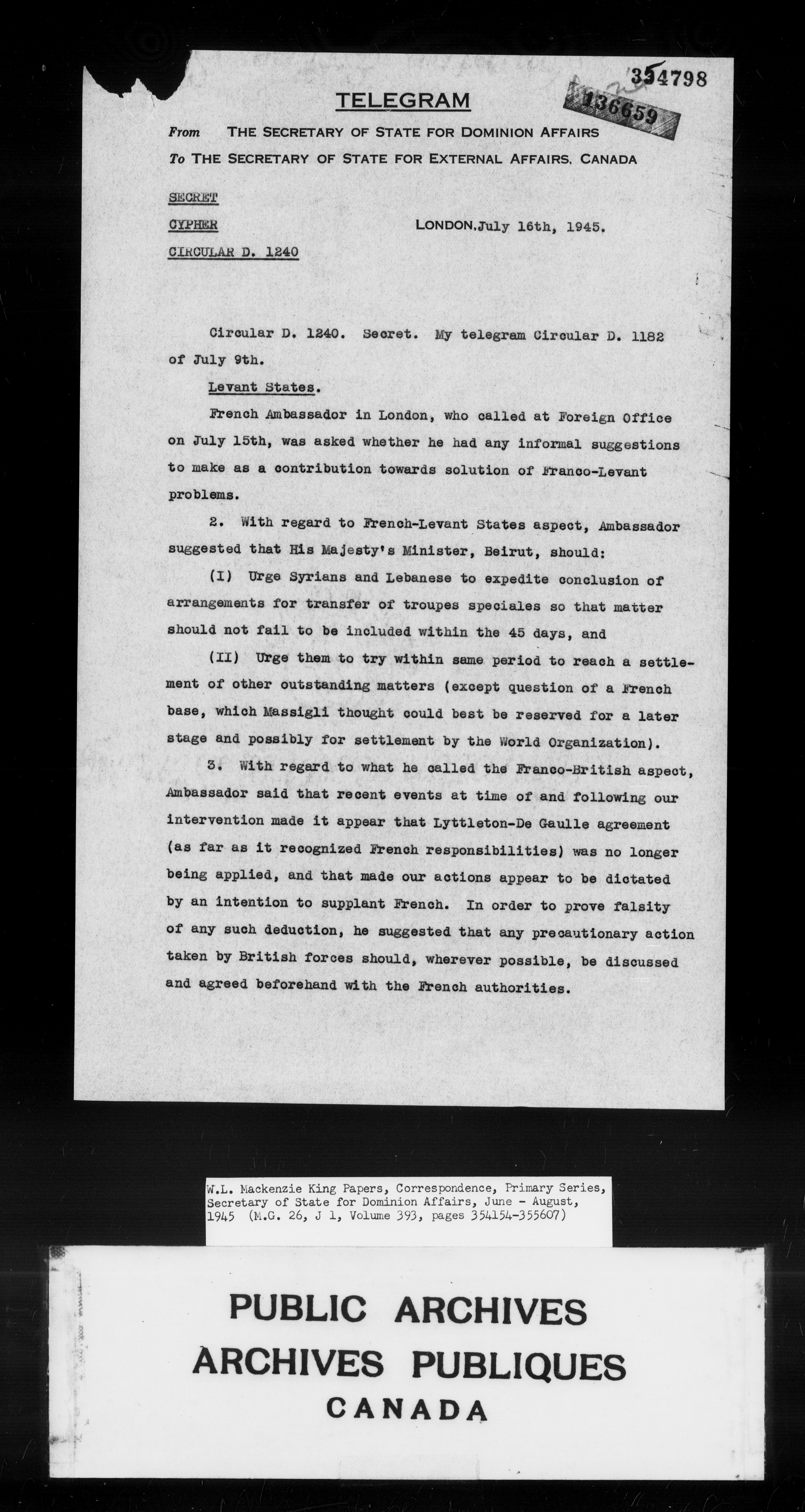 William Lyon Mackenzie King : Primary series correspondence (J1) : C-9882