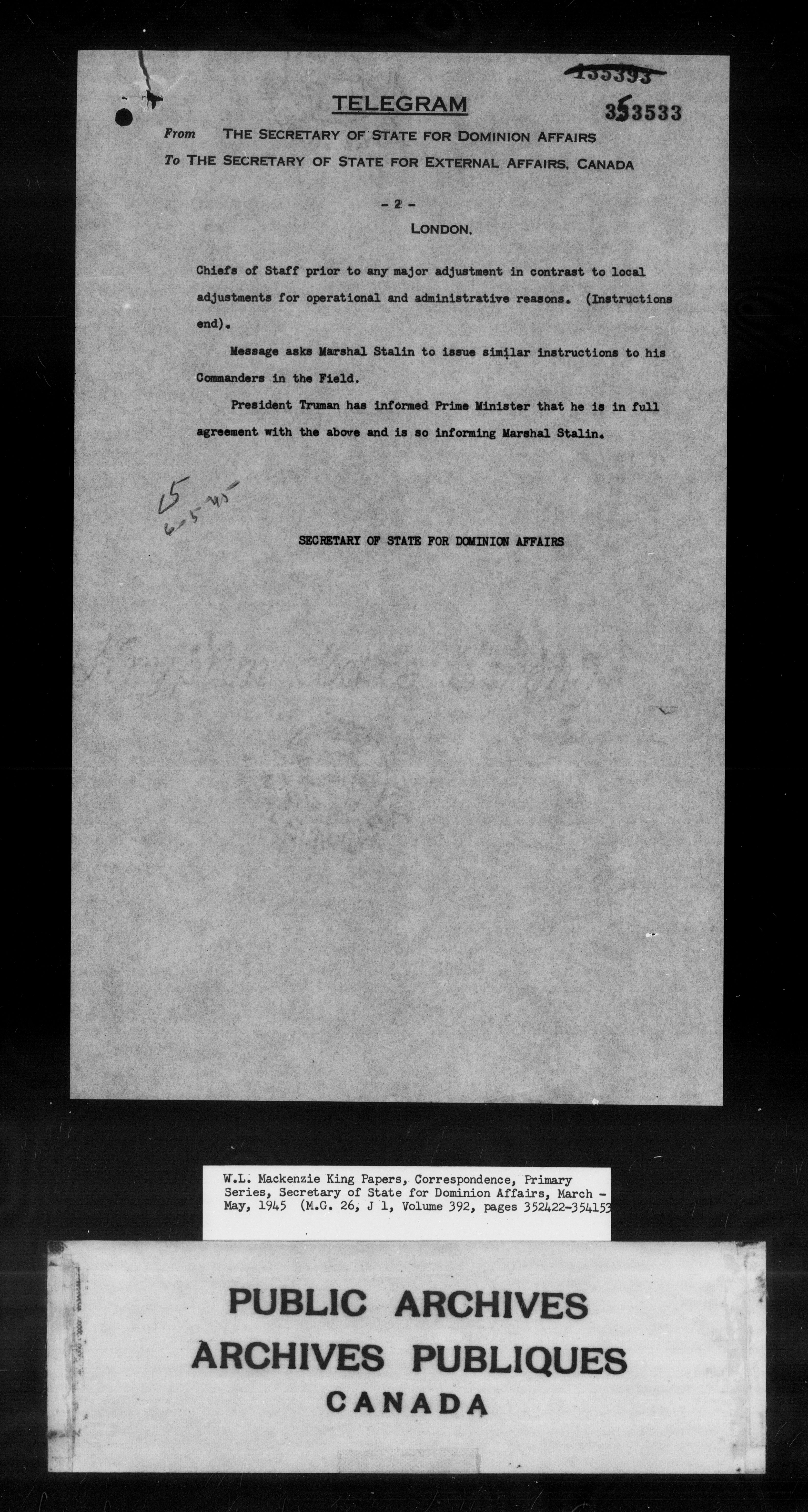 William Lyon Mackenzie King : Primary series correspondence (J1) : C-9882