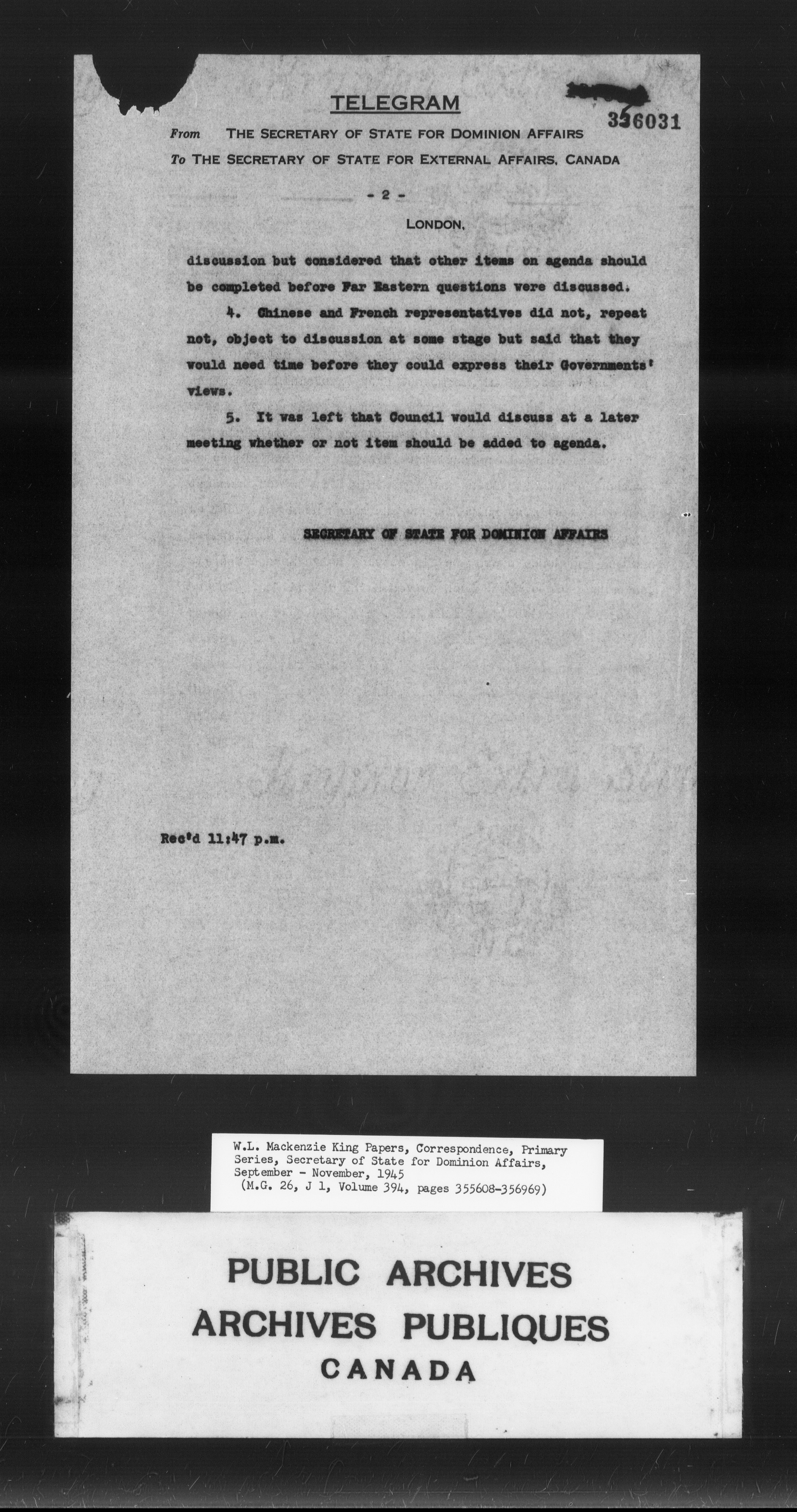 William Lyon Mackenzie King : Primary series correspondence (J1) - 9883