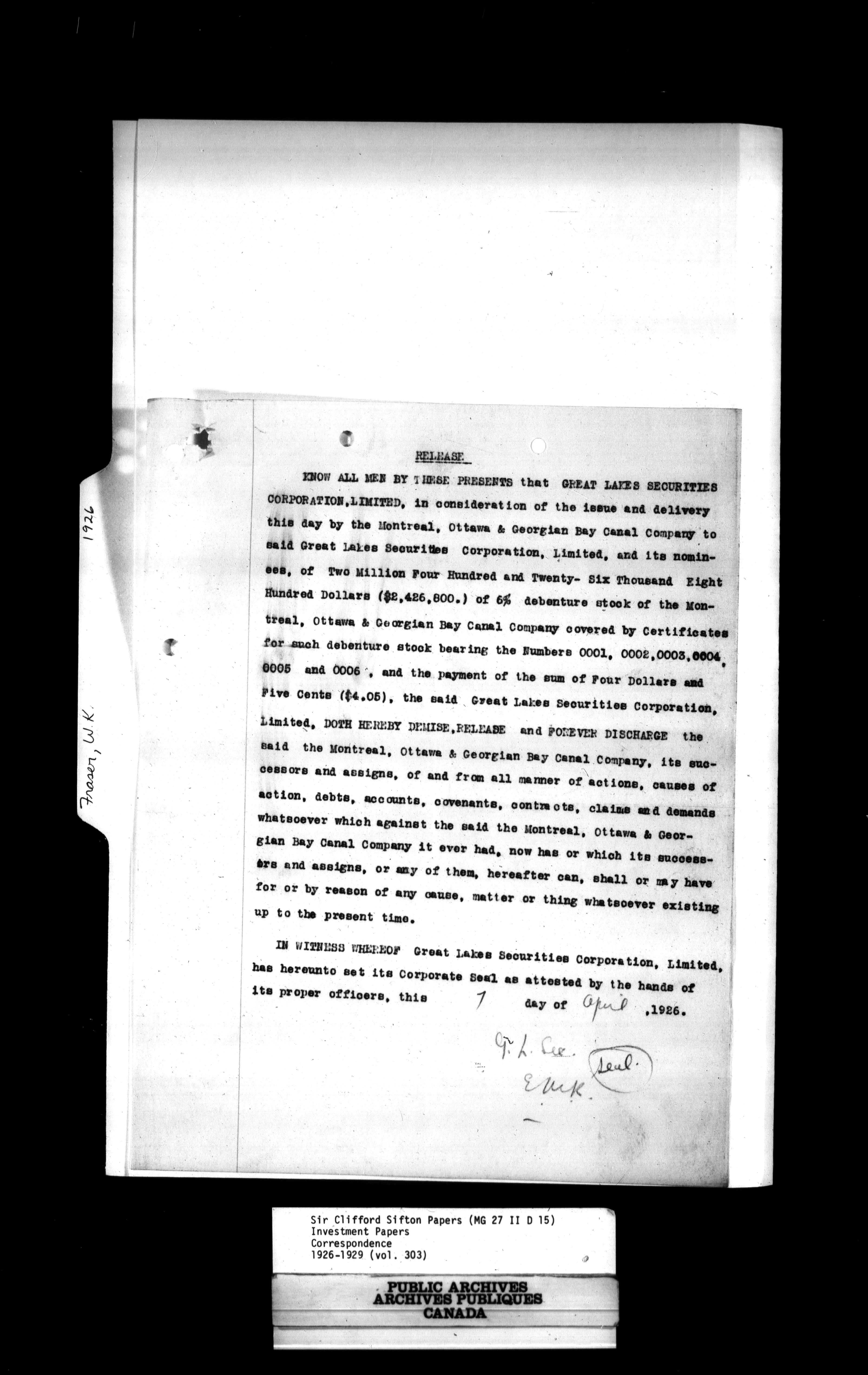 Sir Clifford Sifton : Correspondence - 1005