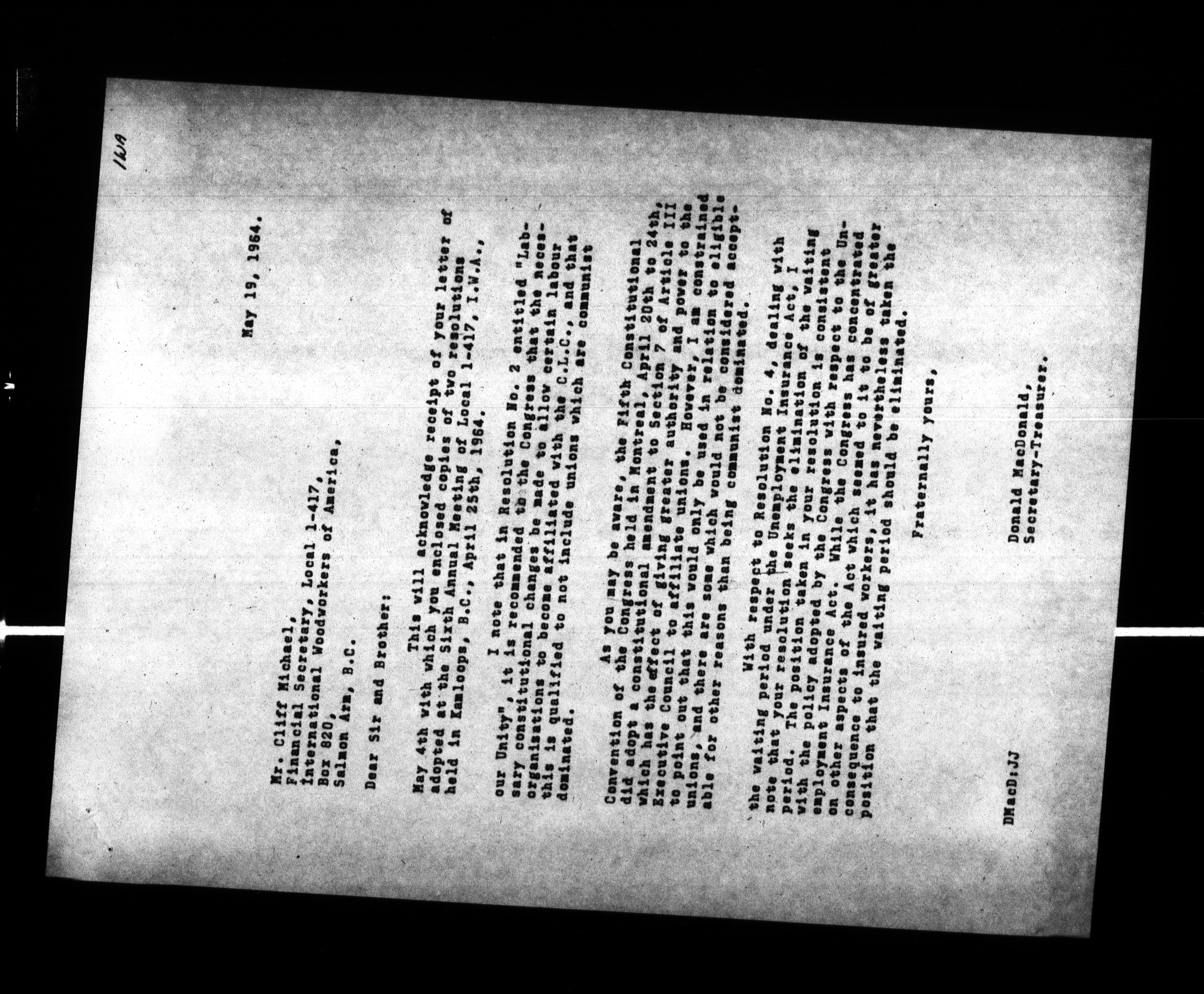Canadian Labour Congress : William Dodge's (Executive Vice President and Secretary-Treasurer) files - 102