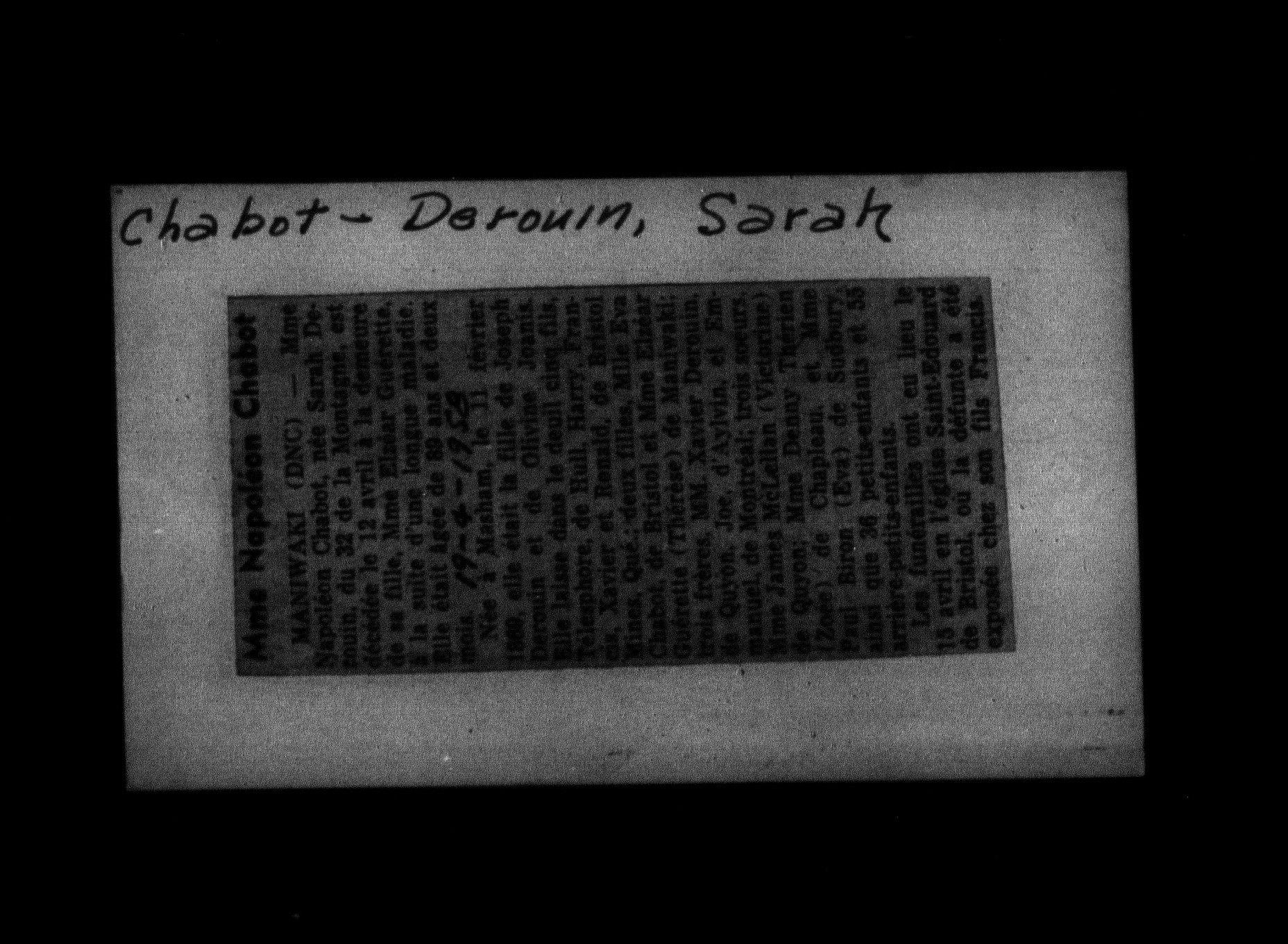 Jacques-Henri Fabien collection : Genealogical notes, and index cards - 1055
