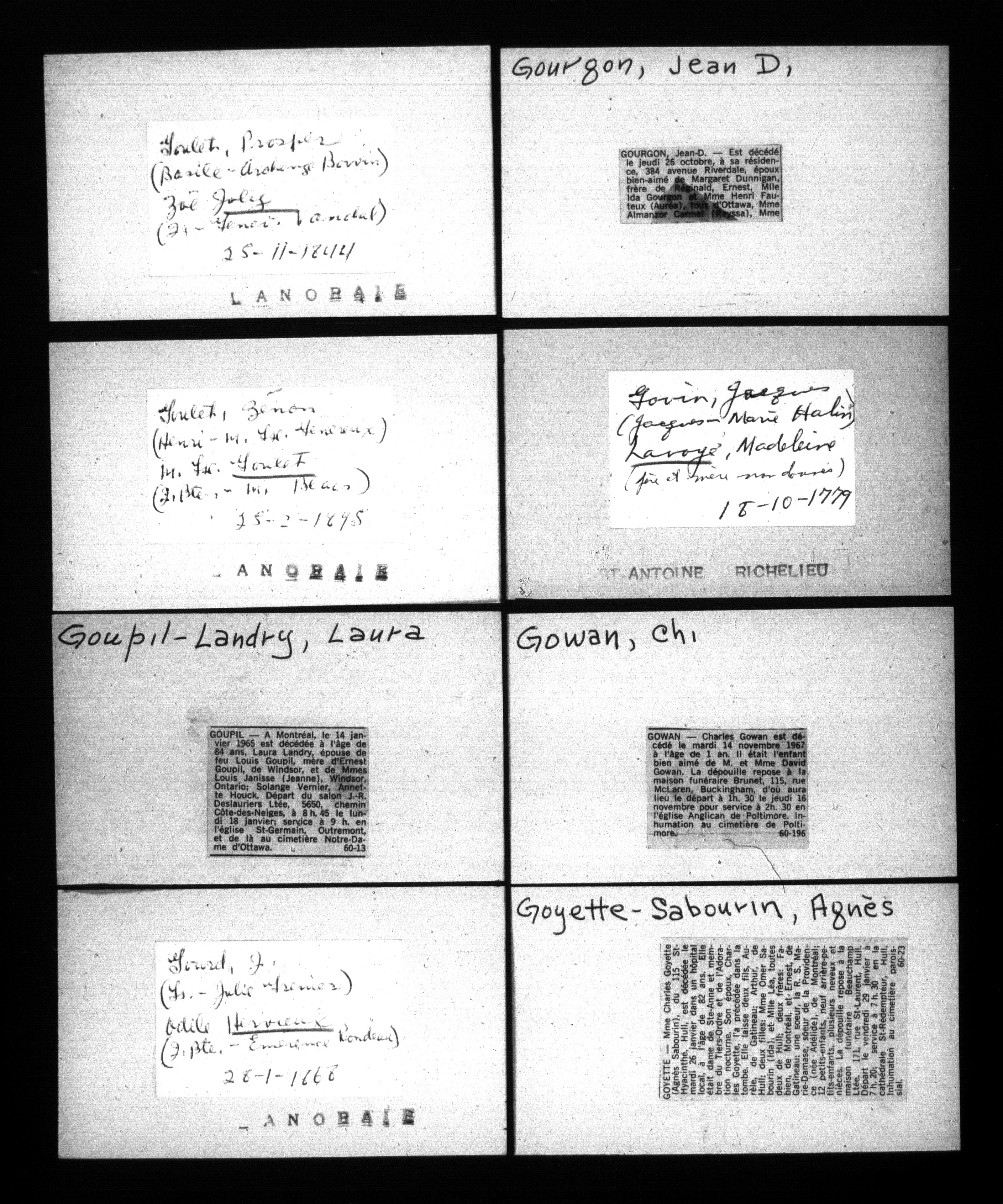 Jacques-Henri Fabien collection : Genealogical notes, and index cards - 1066