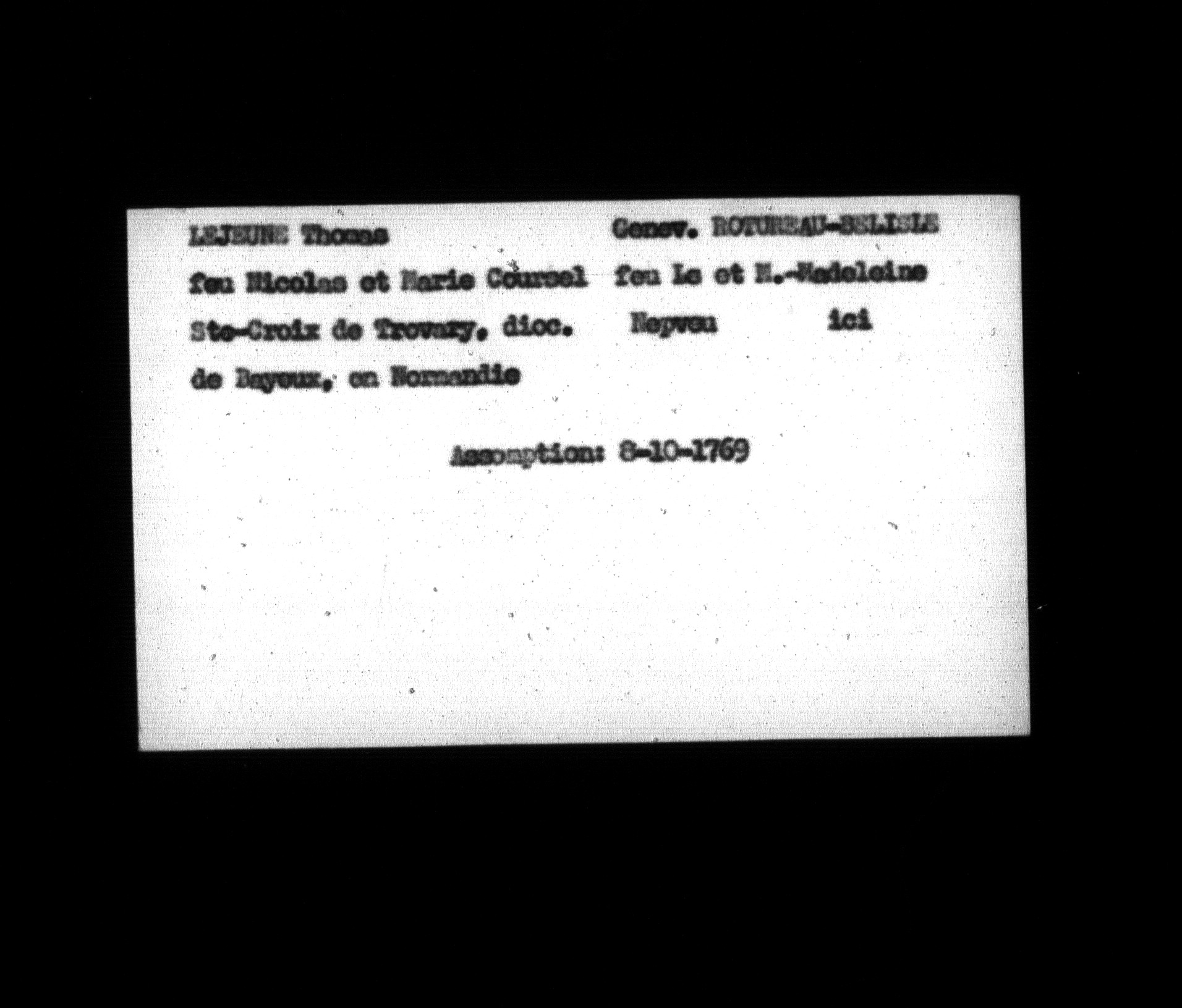 Jacques-Henri Fabien collection : Genealogical notes, and index cards - 1074