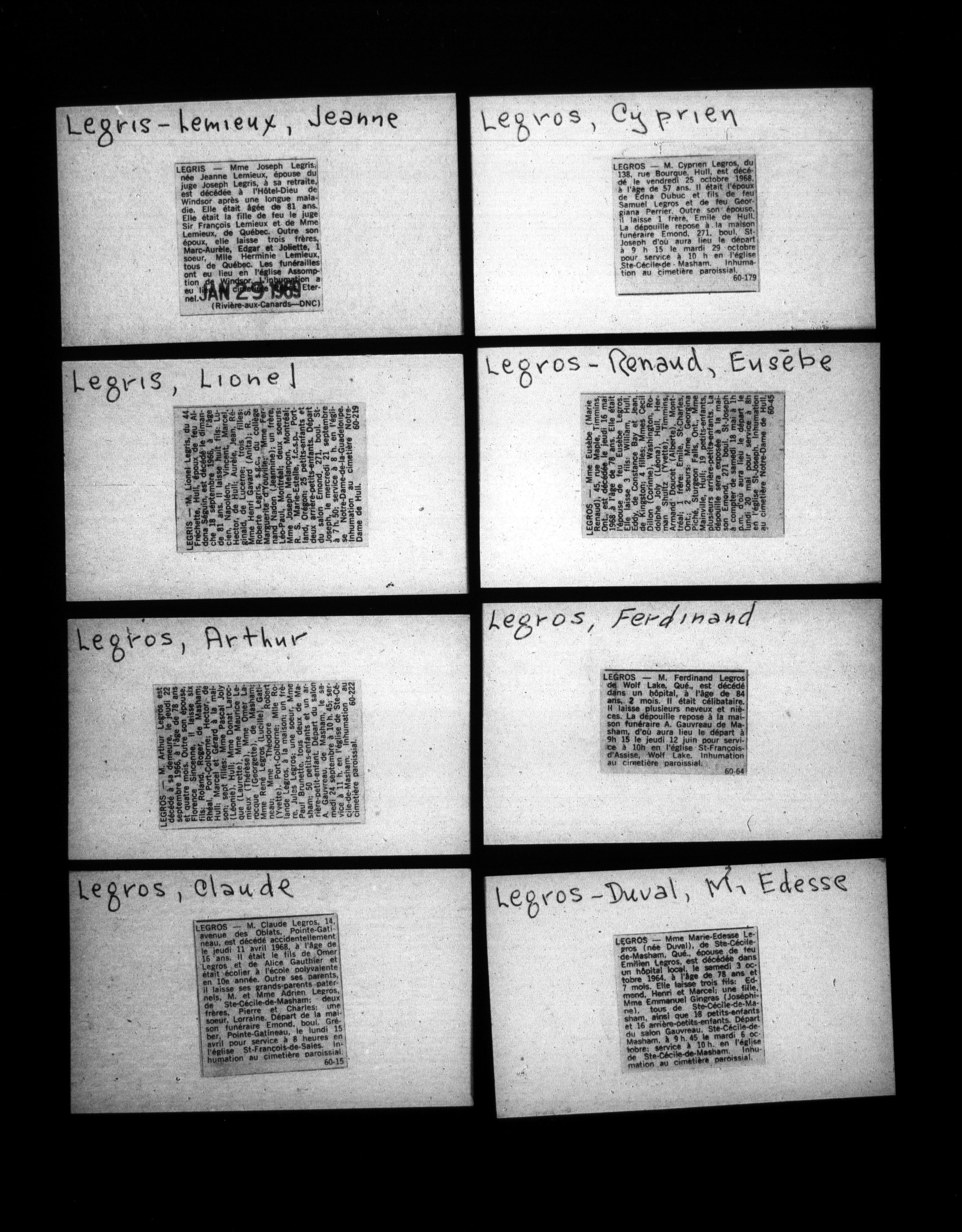Jacques-Henri Fabien collection : Genealogical notes, and index cards - 1074