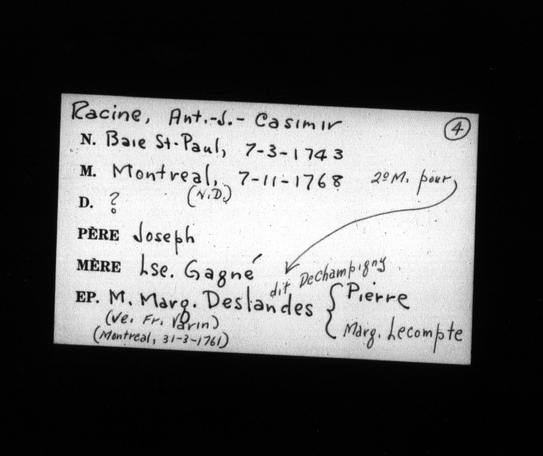 Jacques-Henri Fabien collection : Genealogical notes, and index cards - 1084
