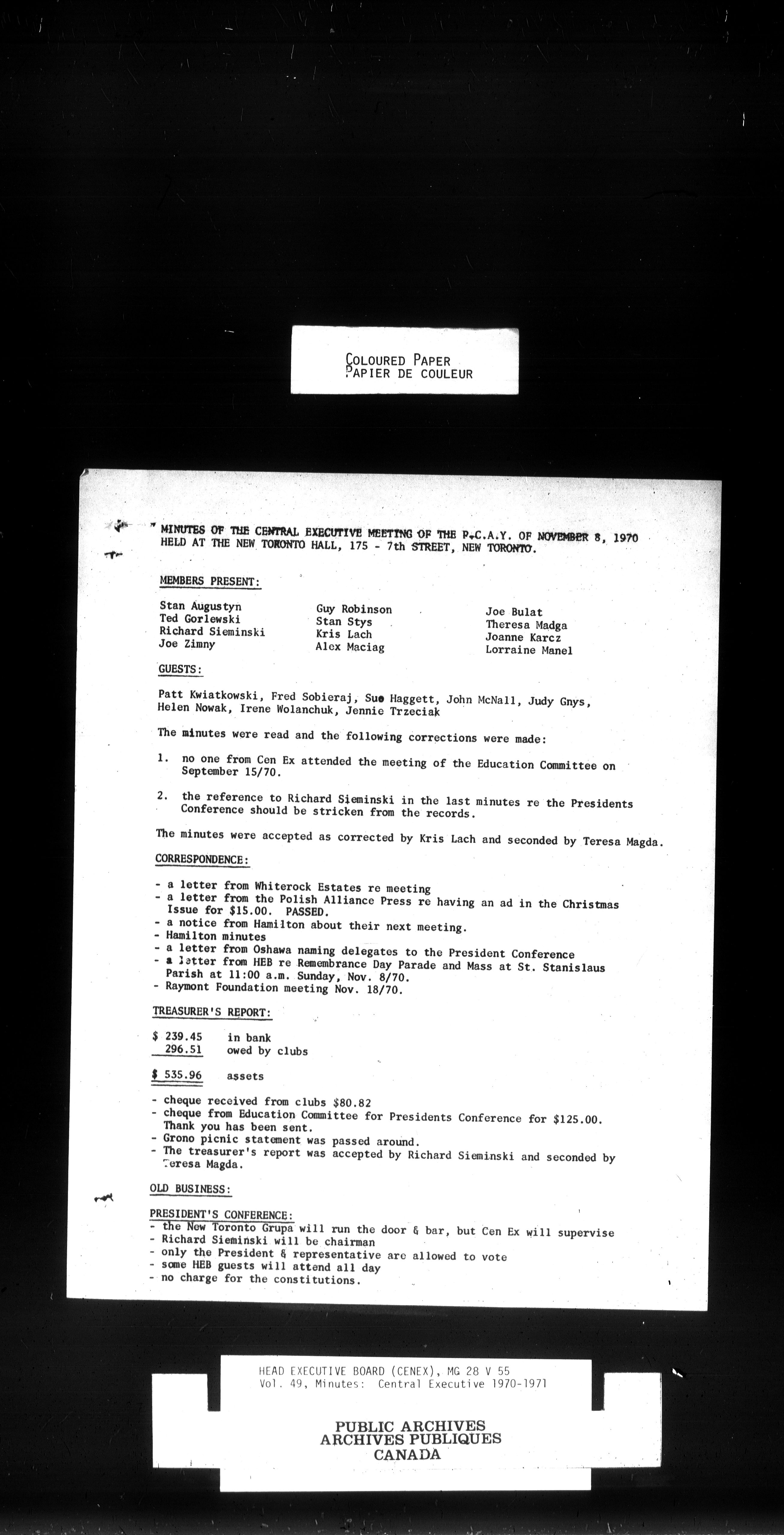 Polish Alliance Friendly Society of Canada fonds : H-1095