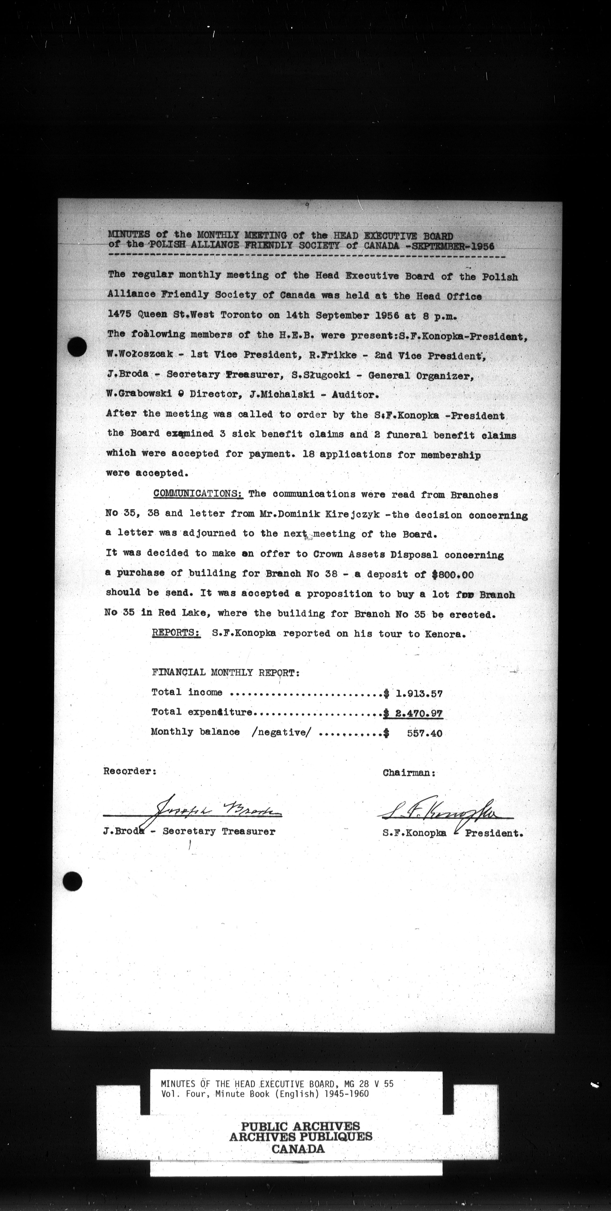 Polish Alliance Friendly Society of Canada fonds : H-1095