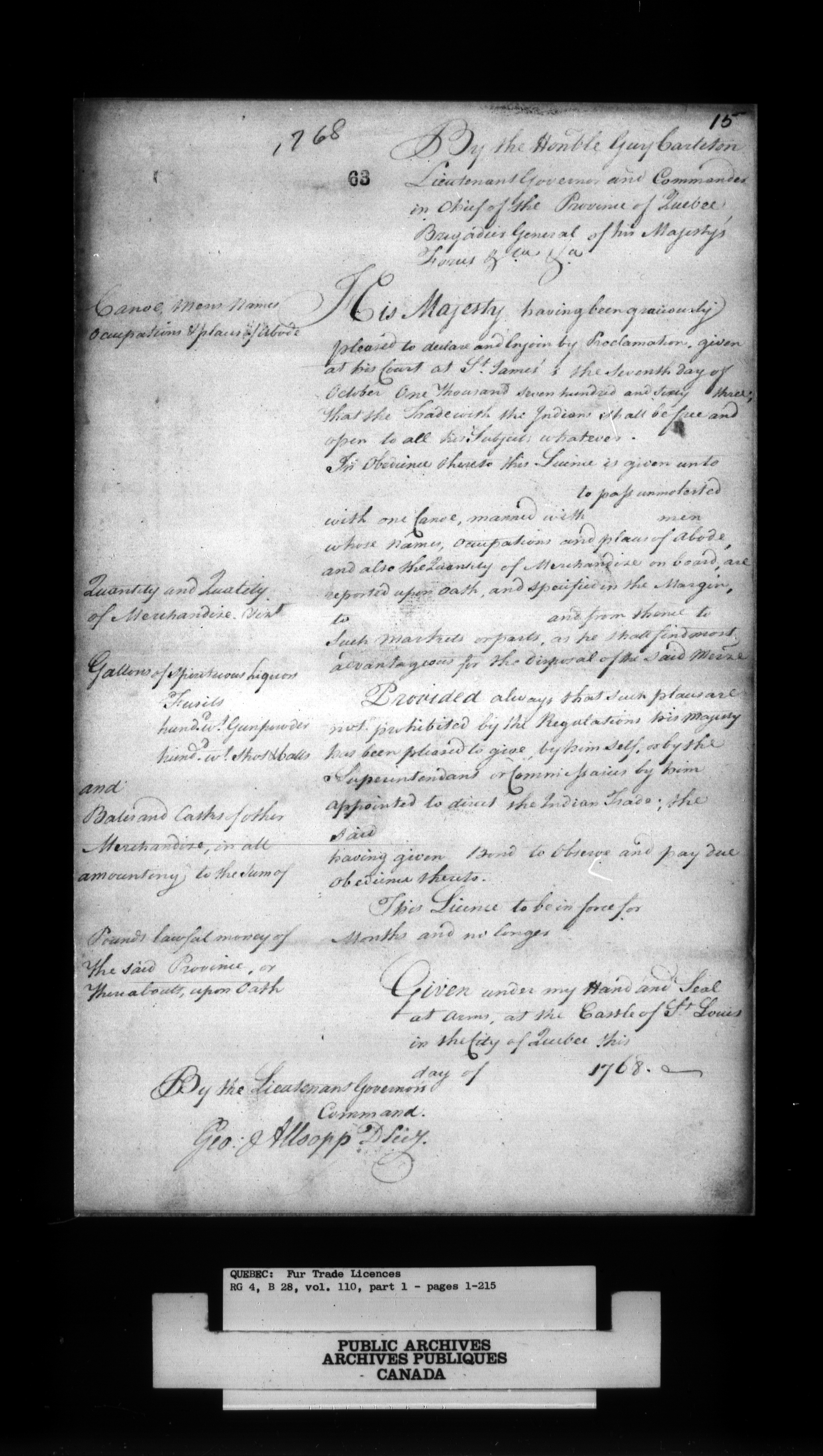 Quebec & Lower Canada : Bonds and licences for the fur trade - 1096