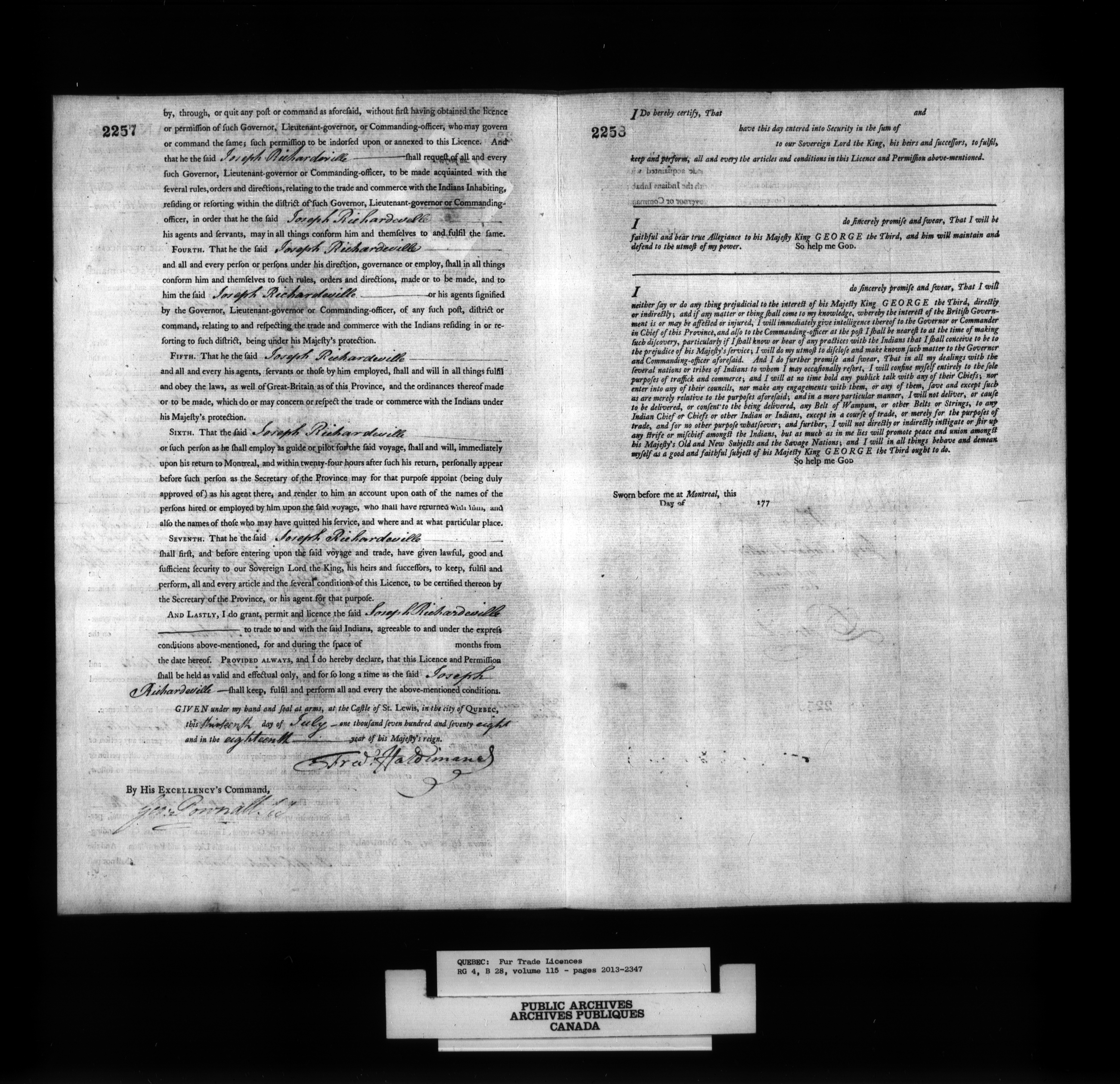 Quebec & Lower Canada : Bonds and licences for the fur trade - 1098