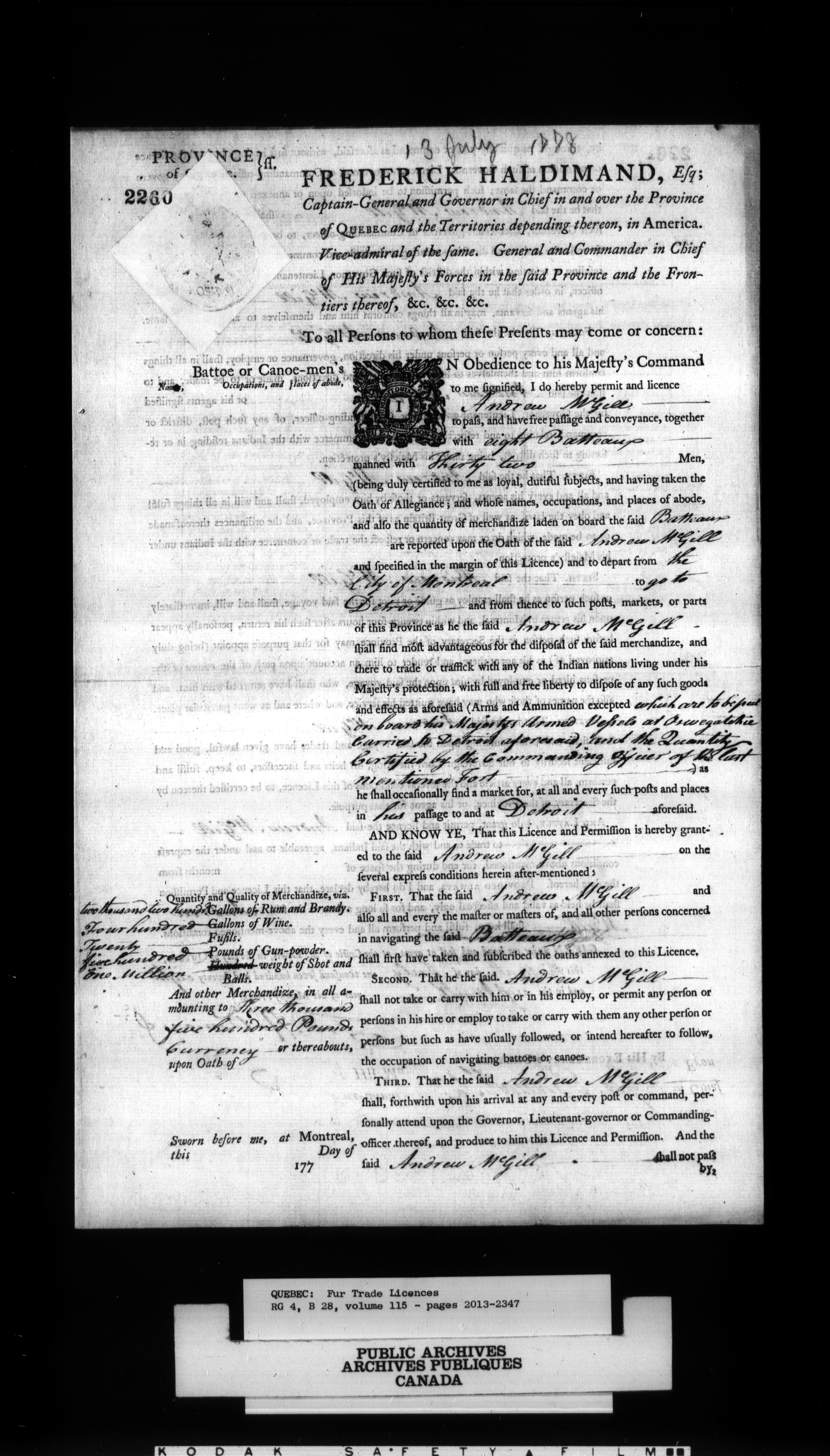 Quebec & Lower Canada : Bonds and licences for the fur trade - 1098