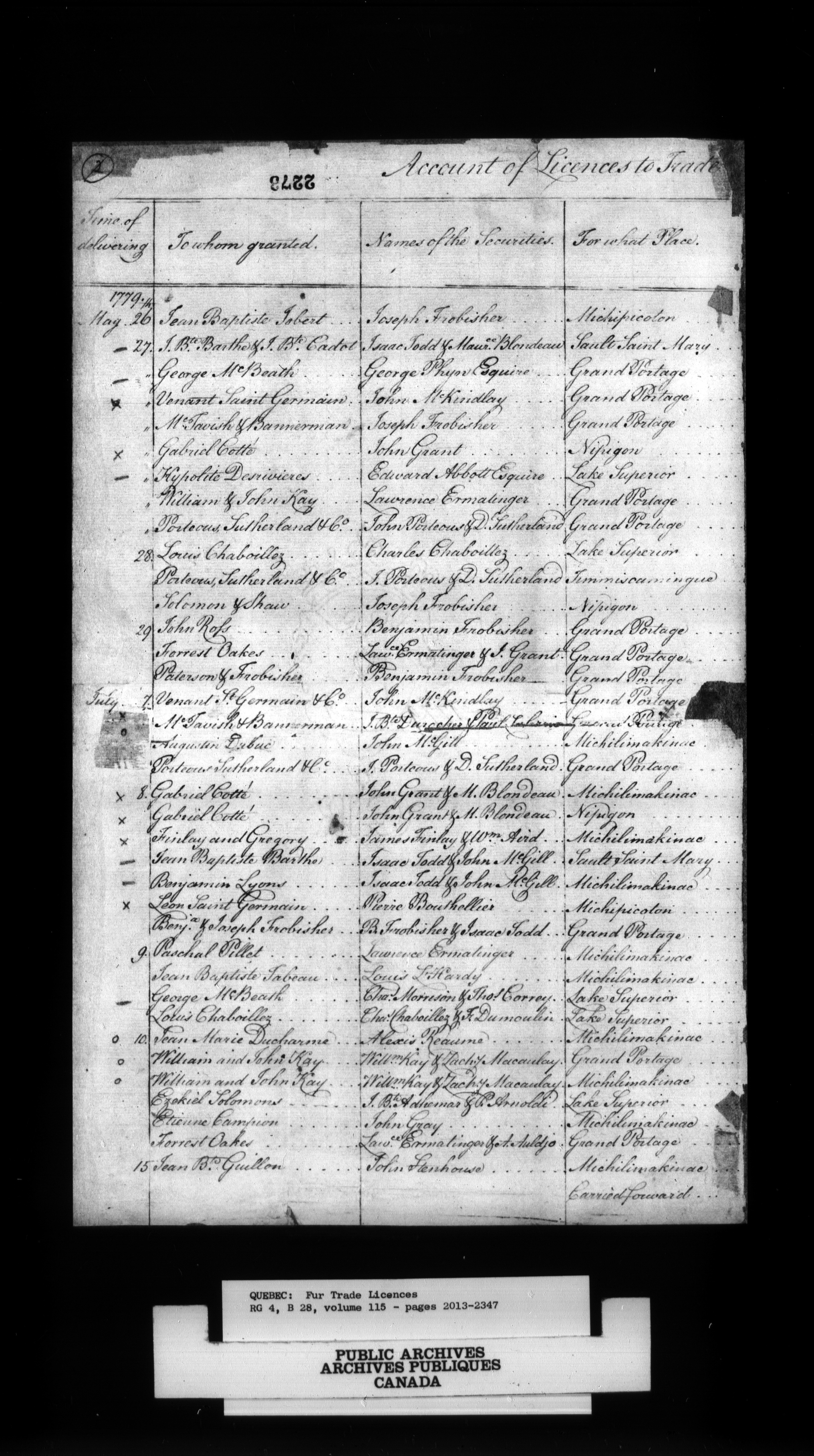 Quebec & Lower Canada : Bonds and licences for the fur trade - 1098