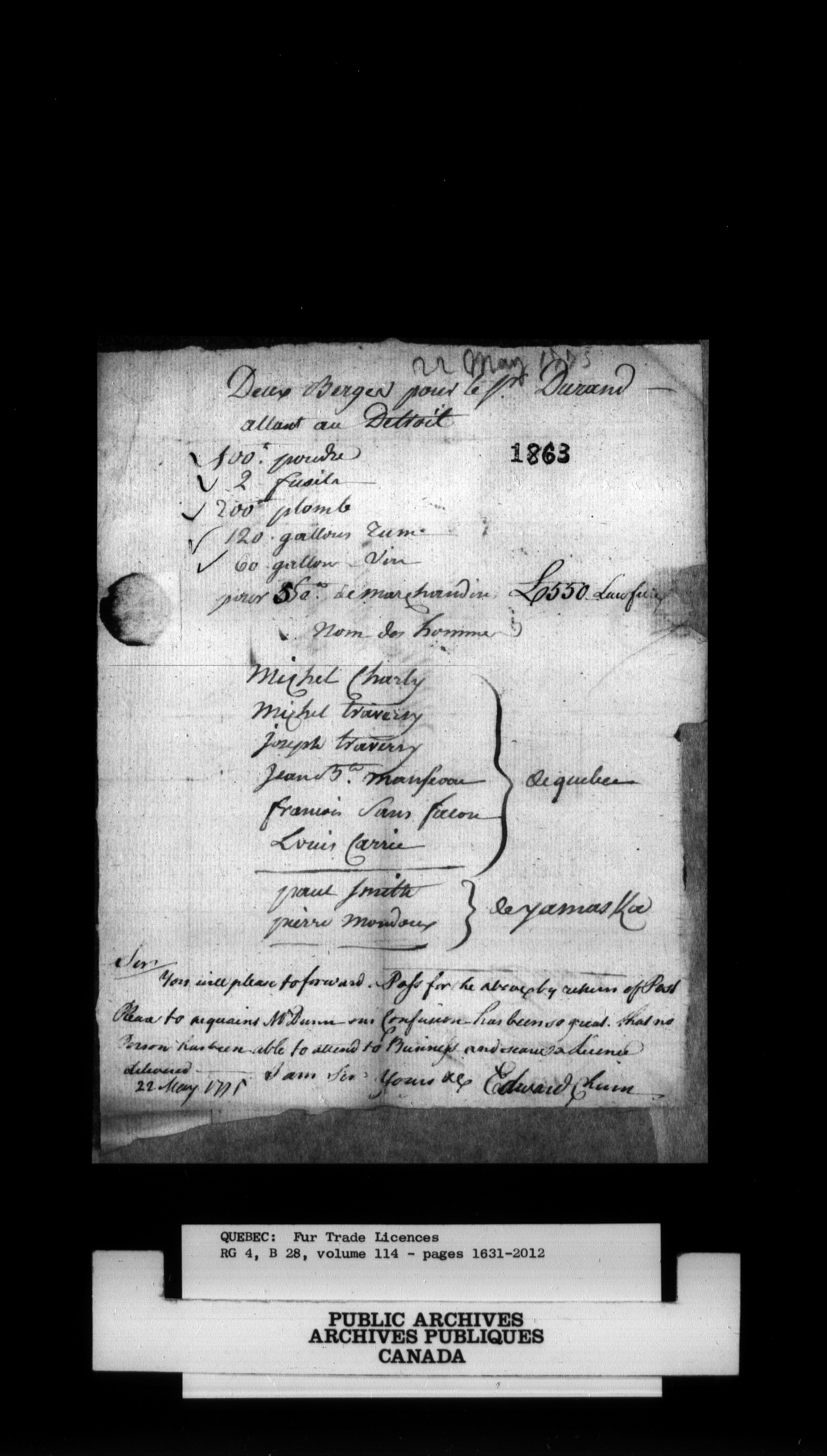 Quebec & Lower Canada : Bonds and licences for the fur trade - 1098