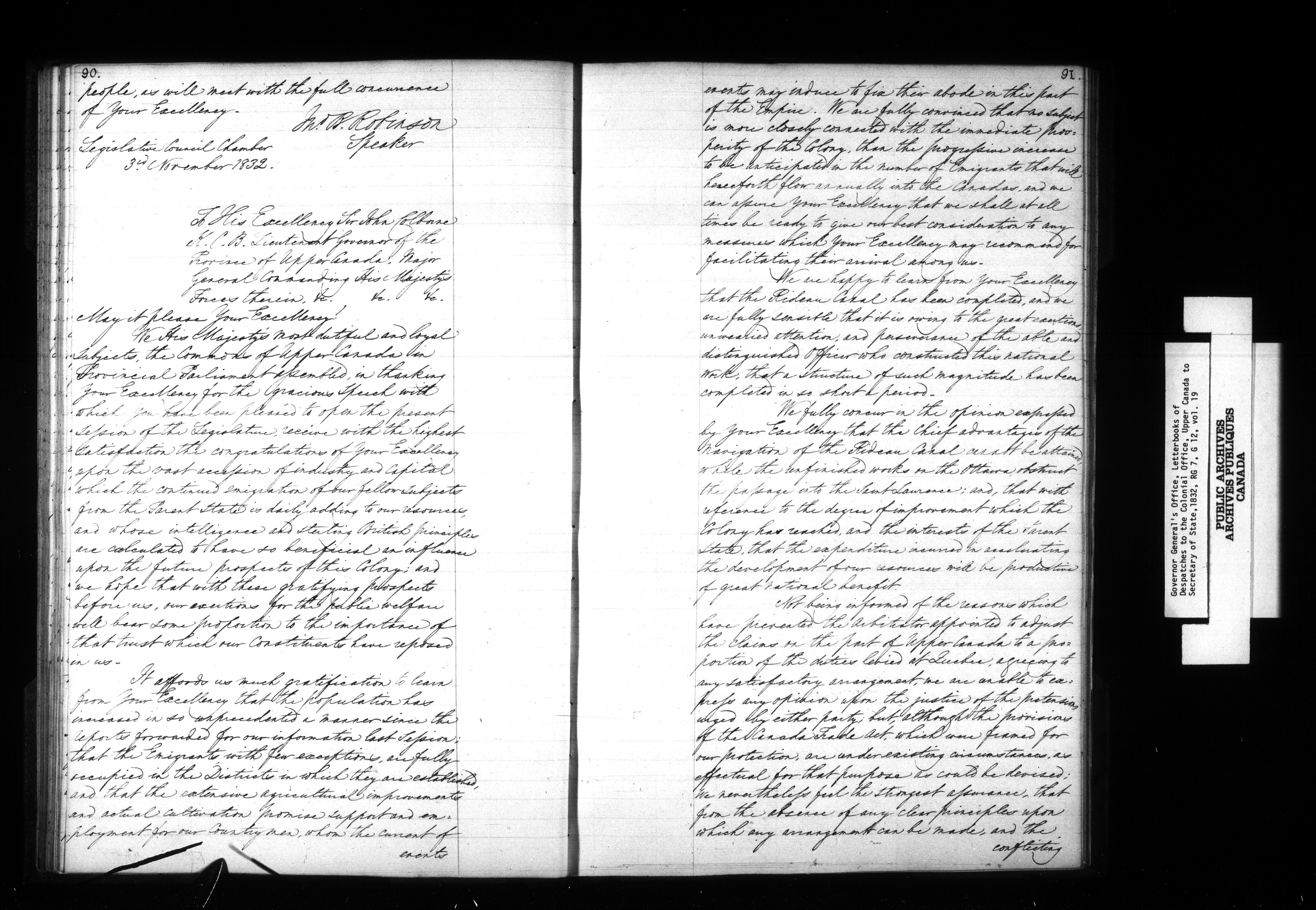 Letter books of Despatches to the Colonial Office from the Governor General of Upper Canada - 1103