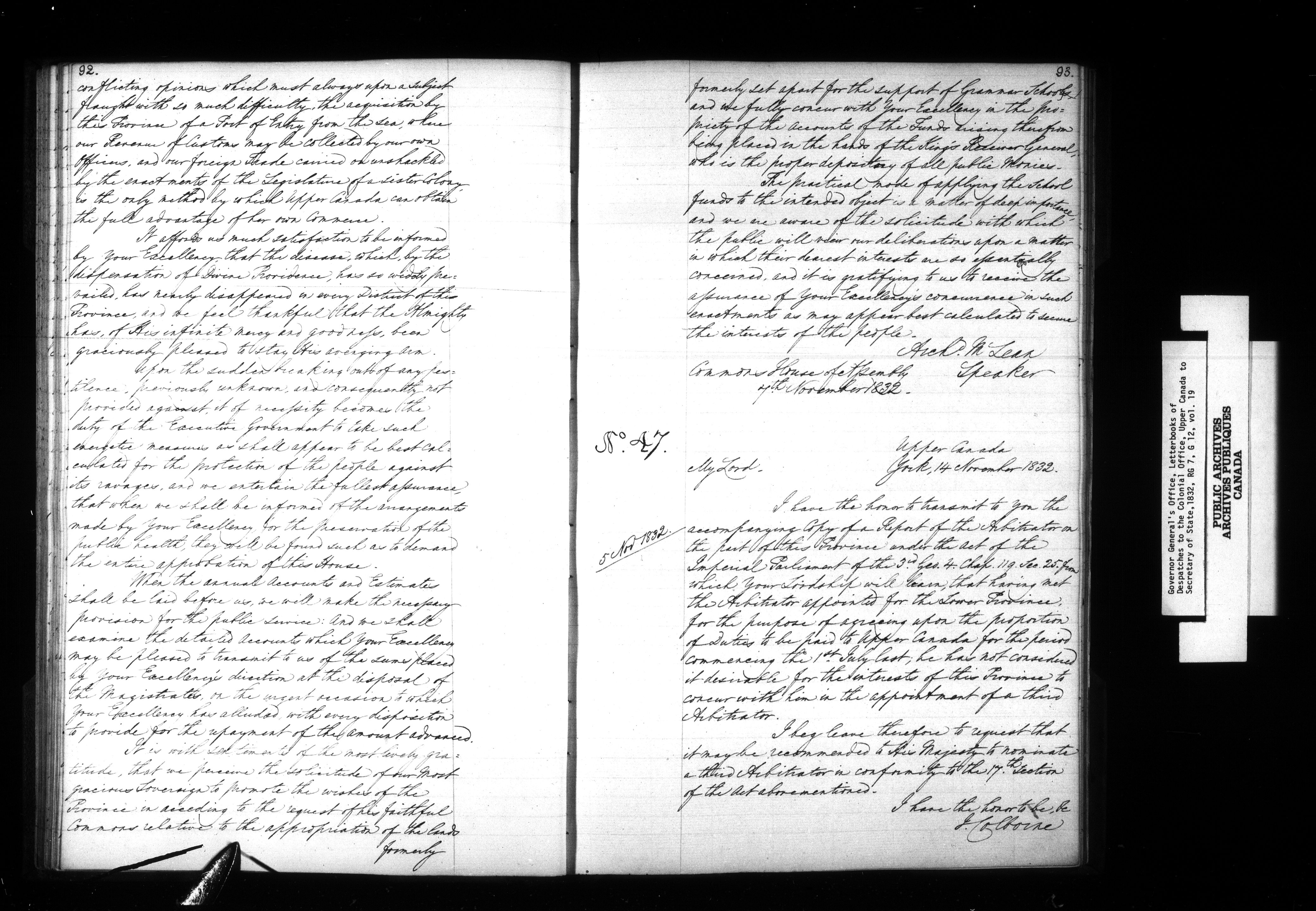 Letter books of Despatches to the Colonial Office from the Governor General of Upper Canada - 1103