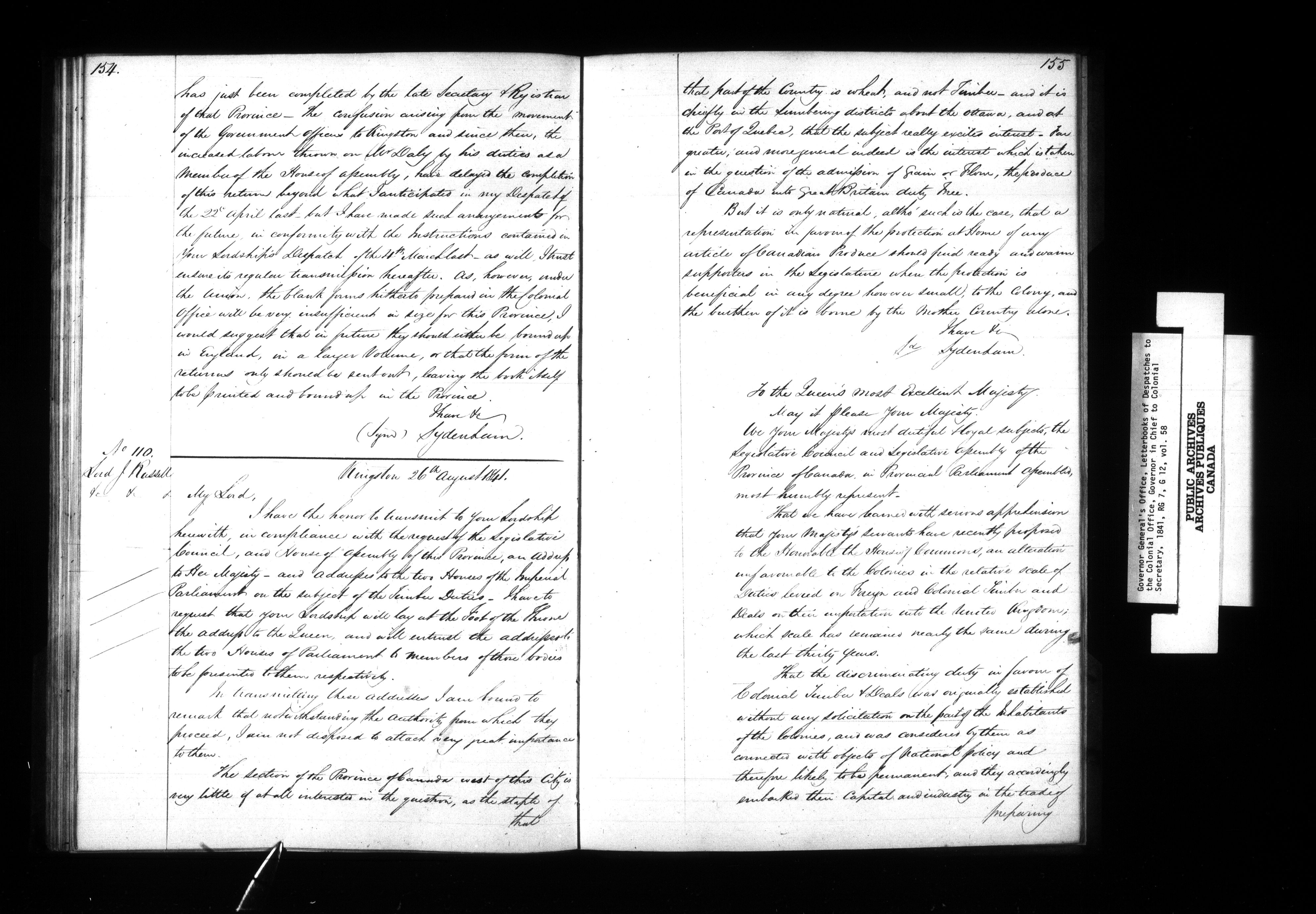 Letter books of Despatches from the Governor-in-Chief in the Province of Canada to the Colonial Office - 1107