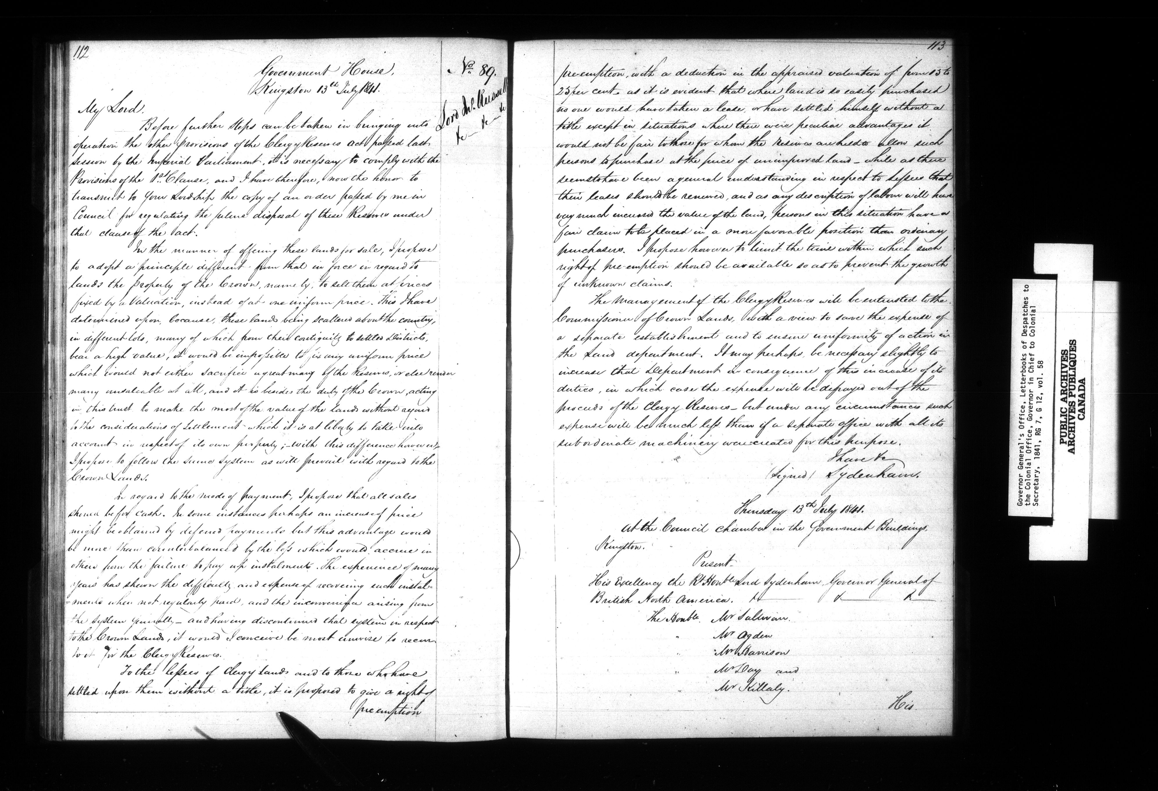 Letter books of Despatches from the Governor-in-Chief in the Province of Canada to the Colonial Office - 1107