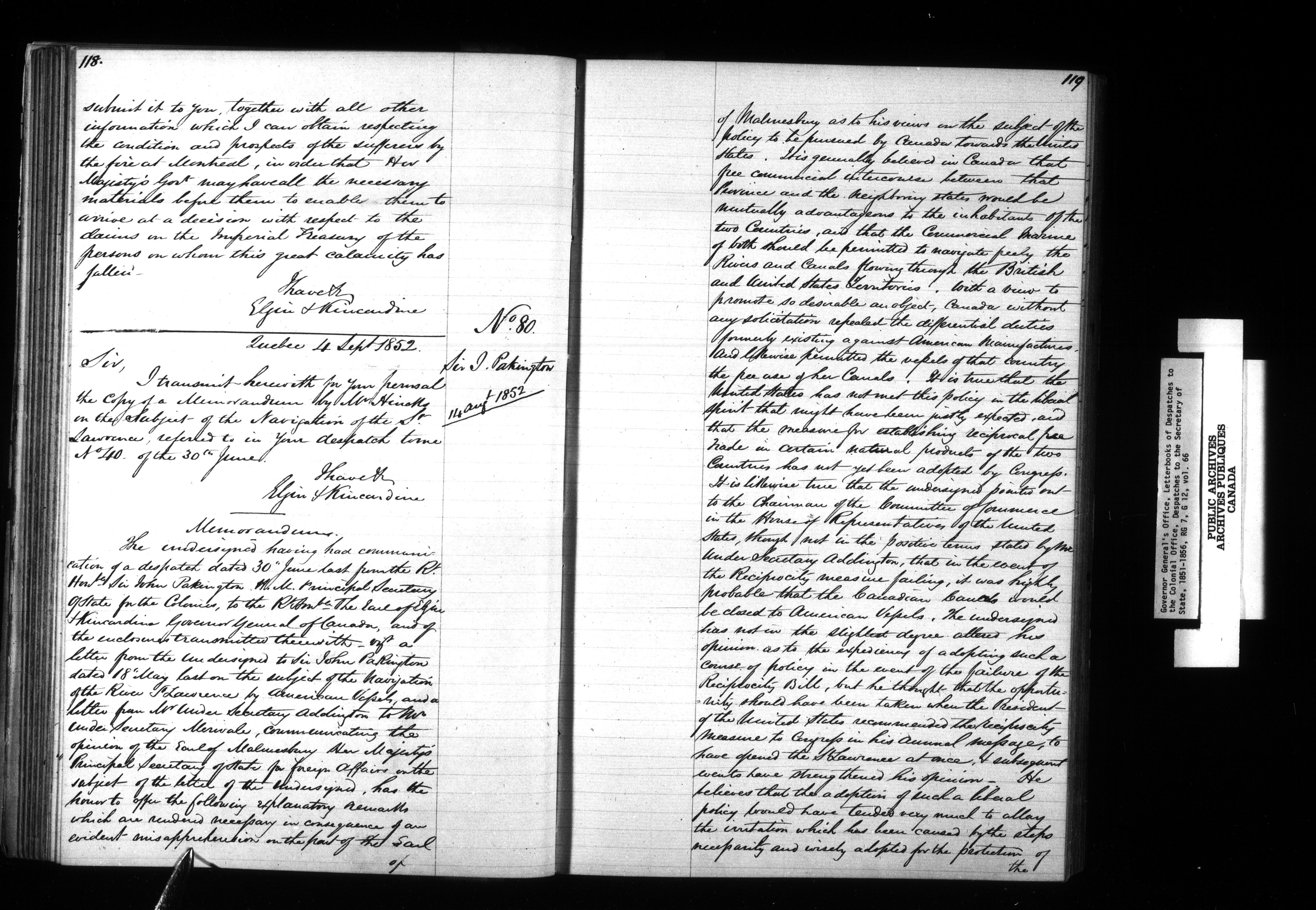 Letter books of Despatches from the Governor-in-Chief in the Province of Canada to the Colonial Office - 1108