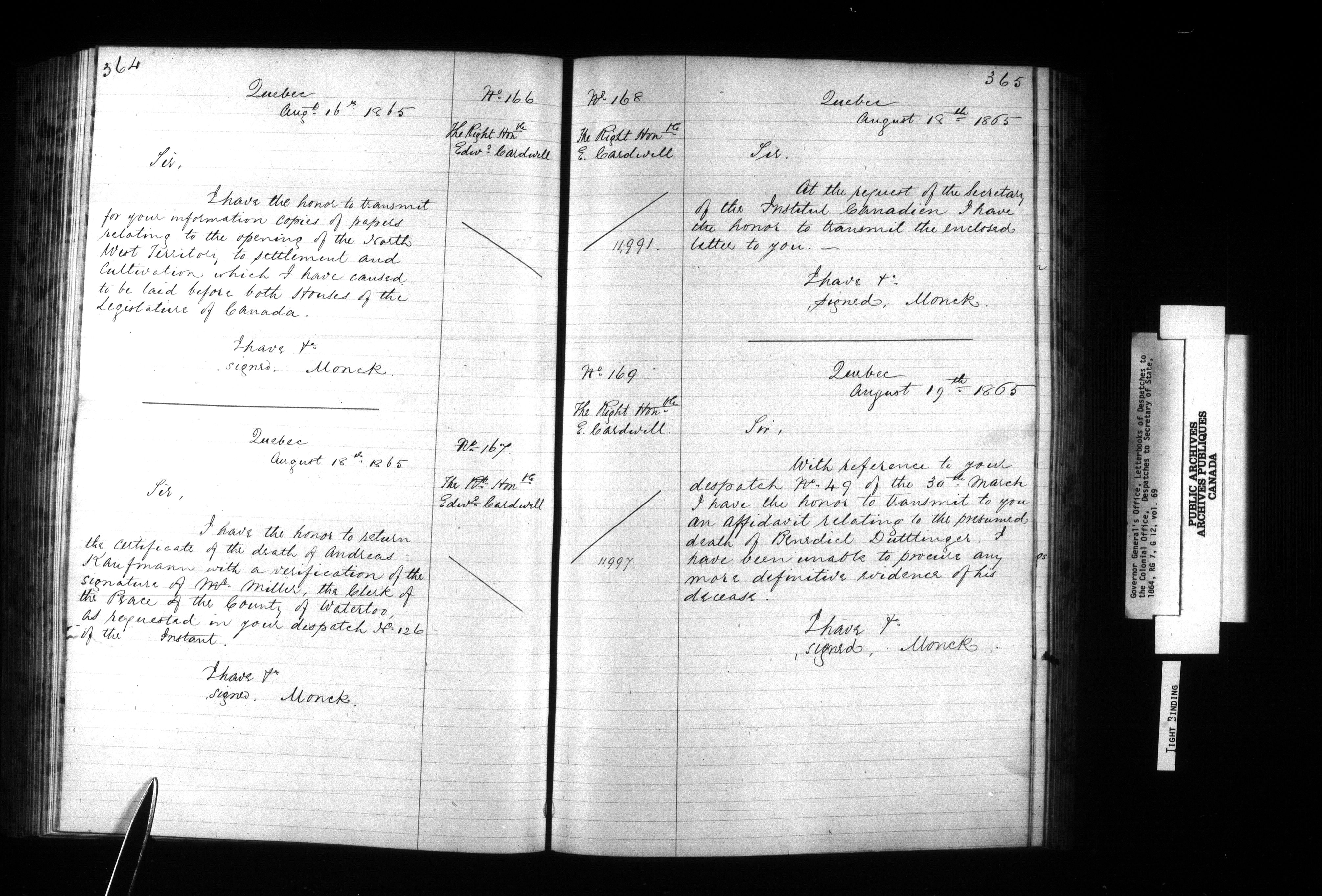 Letter books of Despatches from the Governor-in-Chief in the Province of Canada to the Colonial Office - 1108