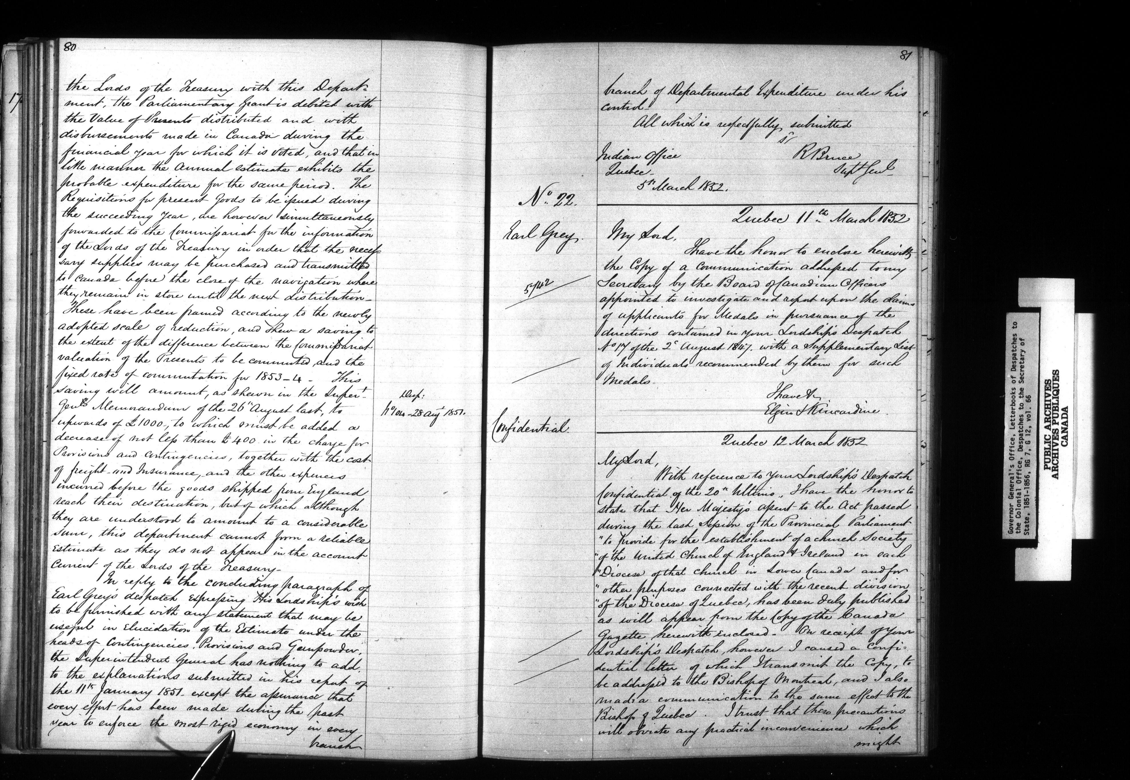 Letter books of Despatches from the Governor-in-Chief in the Province of Canada to the Colonial Office - 1108