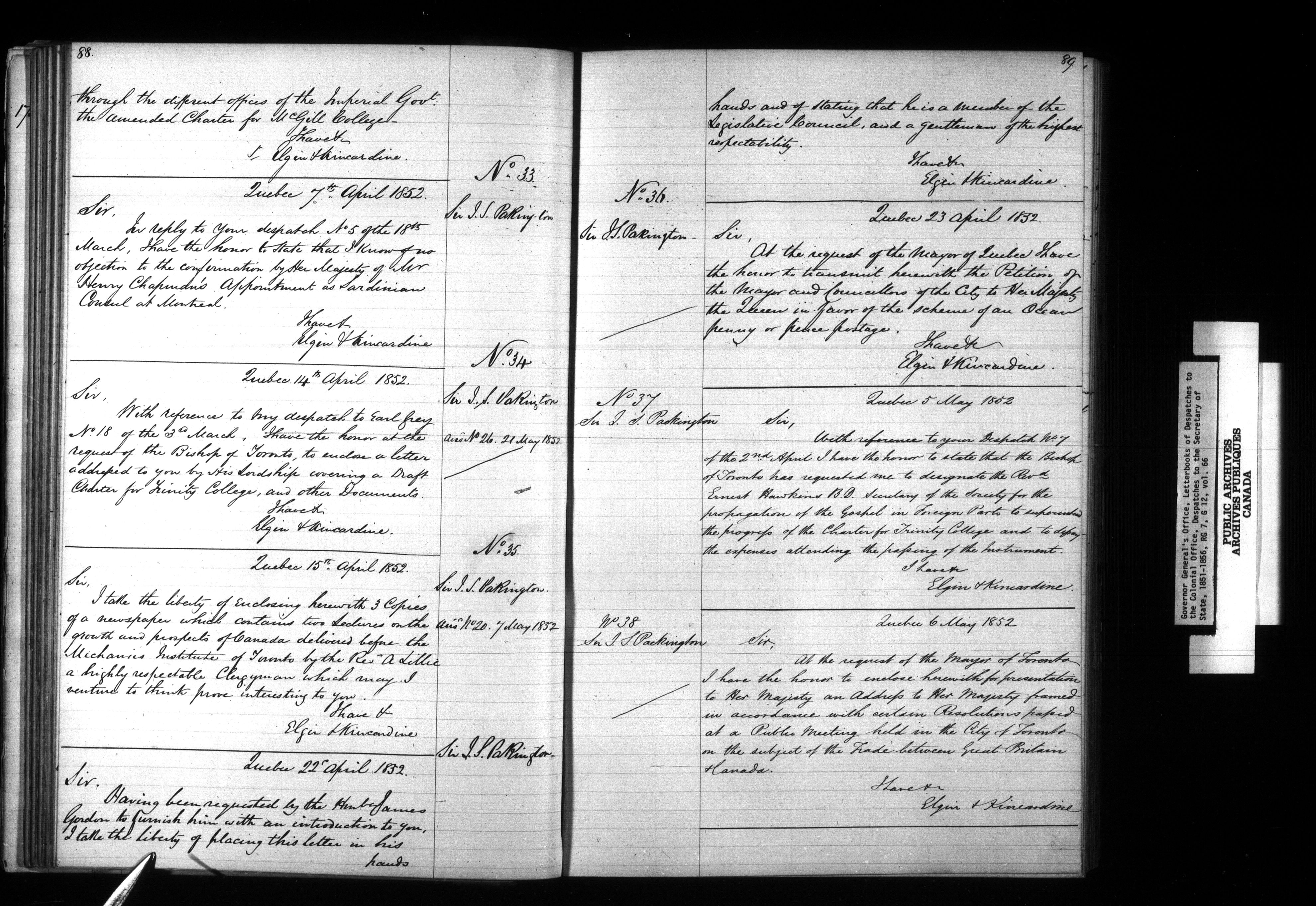 Letter books of Despatches from the Governor-in-Chief in the Province of Canada to the Colonial Office - 1108