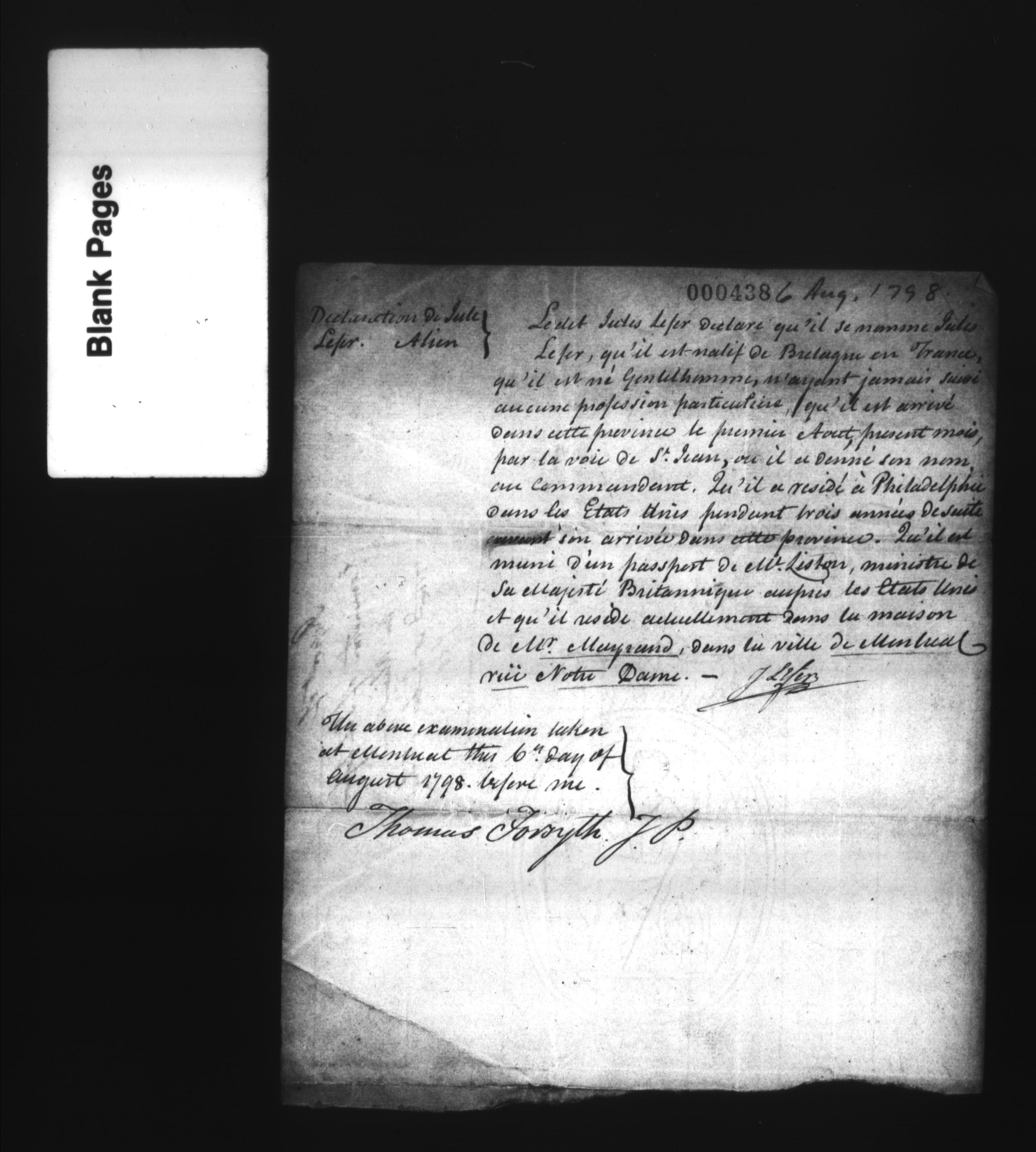 Lower Canada, Declarations of Aliens - H-1154